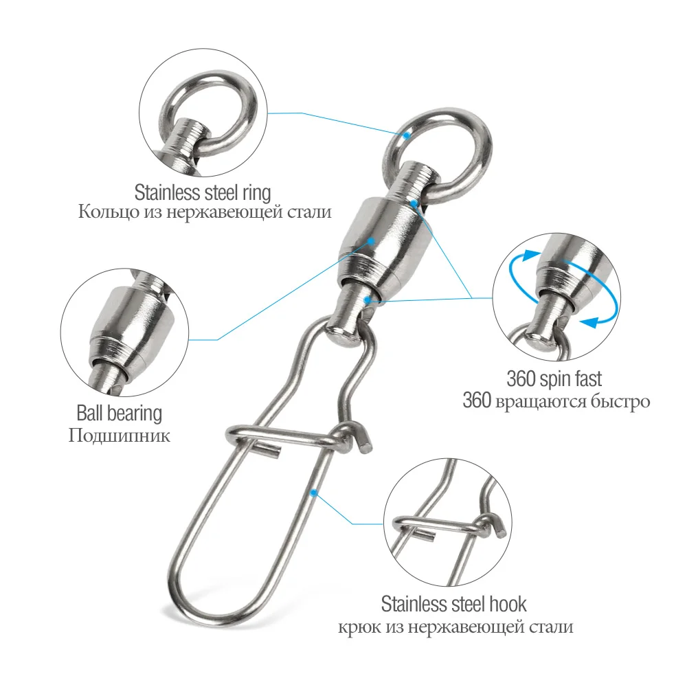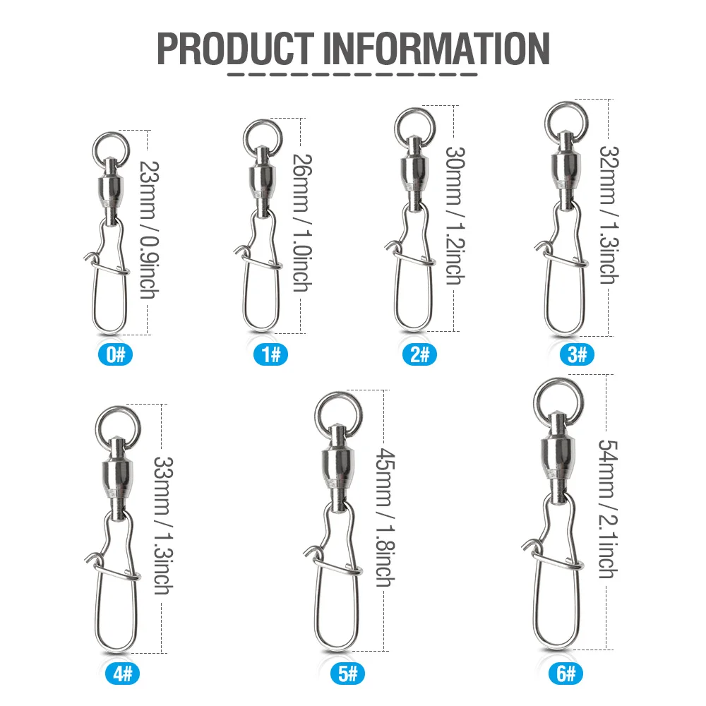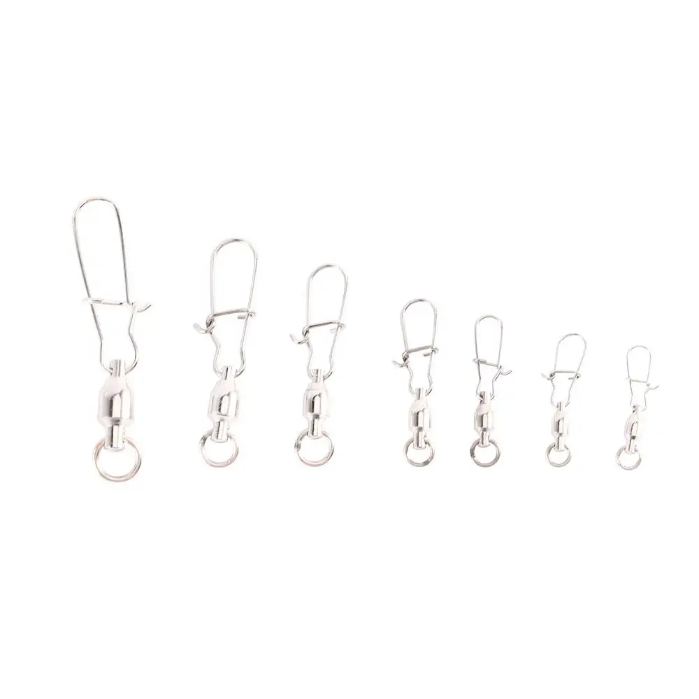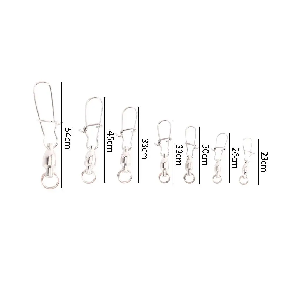 Material:Copper+Stainless Steel Color:Silver Quantity:10pcs Size:0#,1#,2#,3#,4#,5#,6# Package includes:10pcs Fishing Swivels Feature: 1.This product is made of high-manganese steel, super stainless steel processing, anti-rust capability, excellent corrosion resistance. 2.The work is very delicate, professional polishing technology, smooth surface, bright color. 3.360 degrees rotation to rotate flexible, so easy to tie fishing groups, suitable for connecting various fishing groups. 4.double insurance, is not easy to hurt the line, in the case of a strong rally, but also the flexibility to rotate. 5.The main fish , tension moderate, can ease the impact, the protection of the line to prevent pull off.