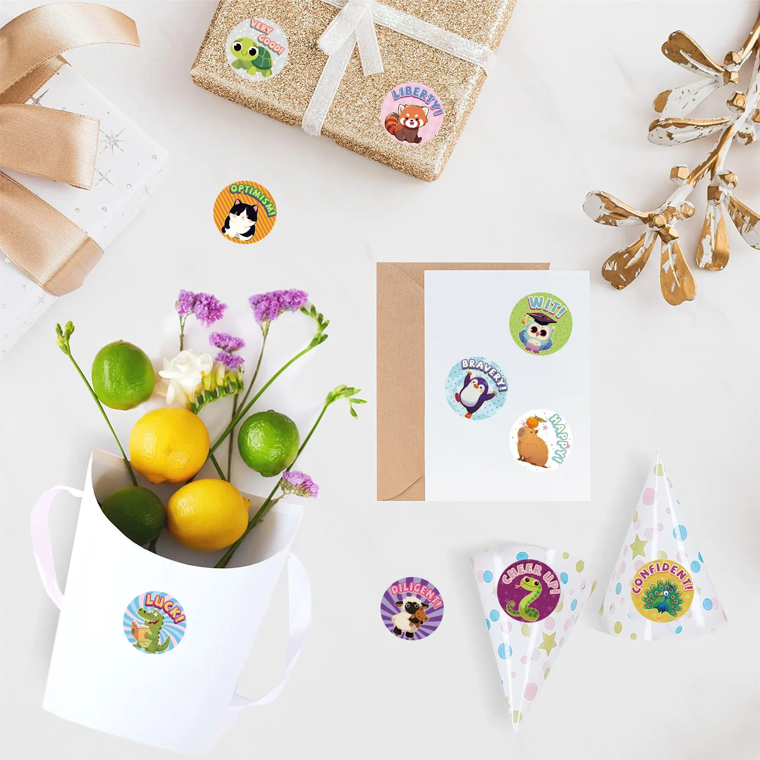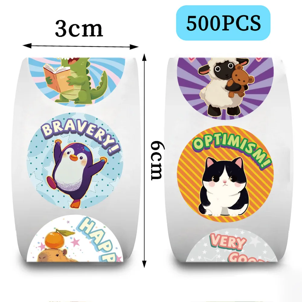 Eslogan de dibujos animados de animales para niños, pegatina de grafiti, bricolaje, guitarra, portátil, cuaderno, Maleta, taza, impermeable, juguete, regalos, 500 piezas por rollo