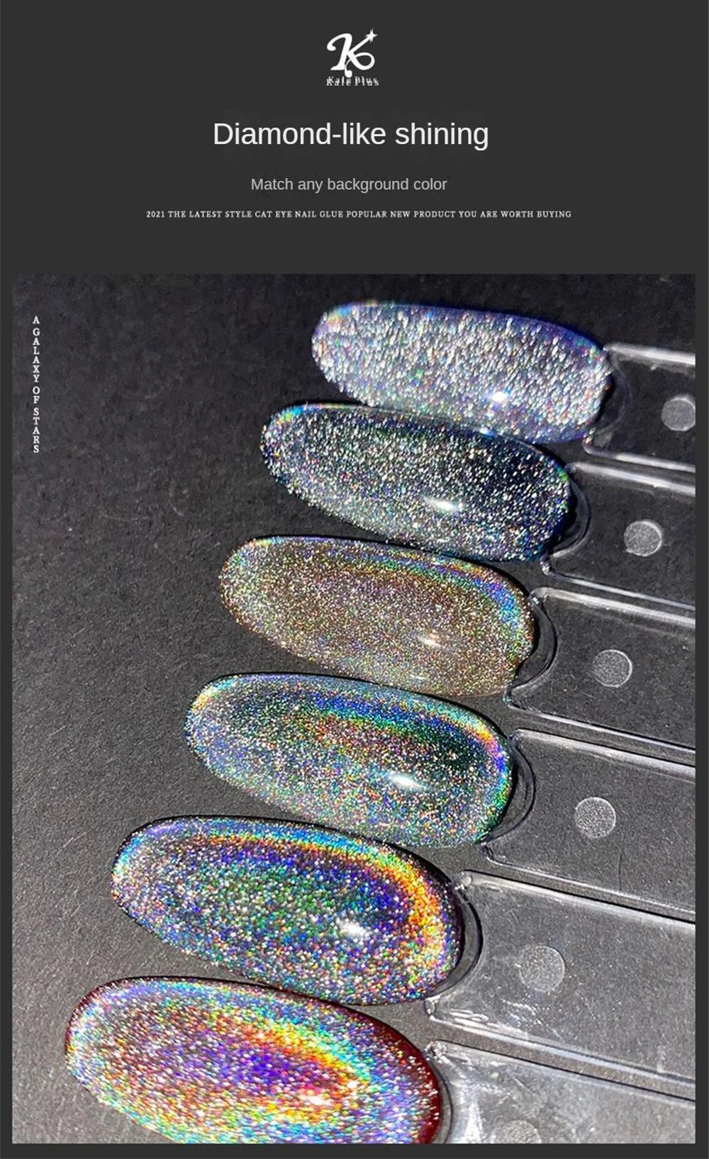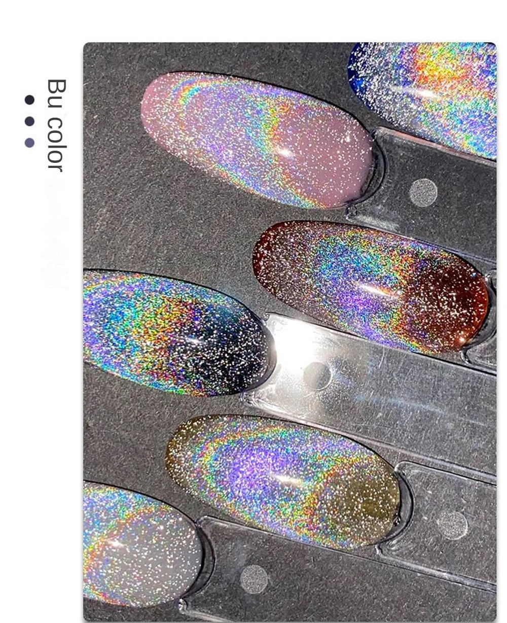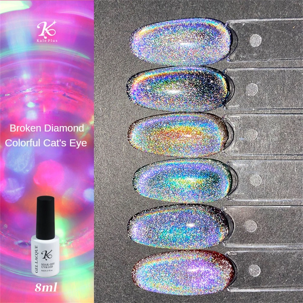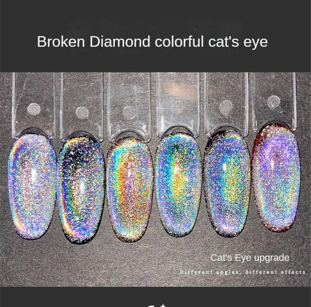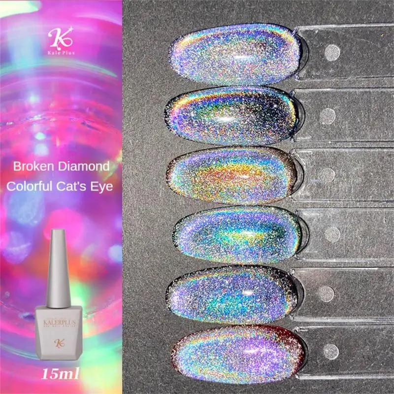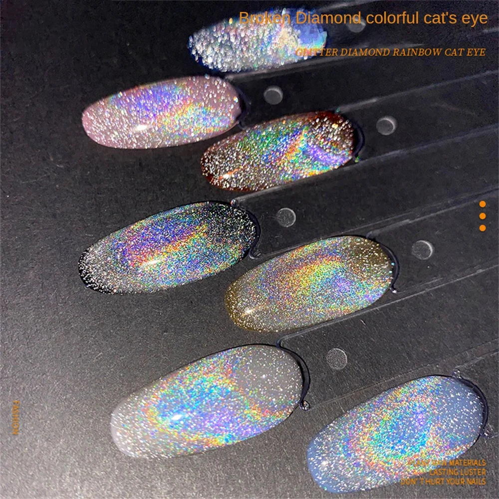 Diamante roto colorido ojo de gato esmalte de uñas Gle láser Arco Iris reflectante explosión brillante pegamento de aceite de uñas