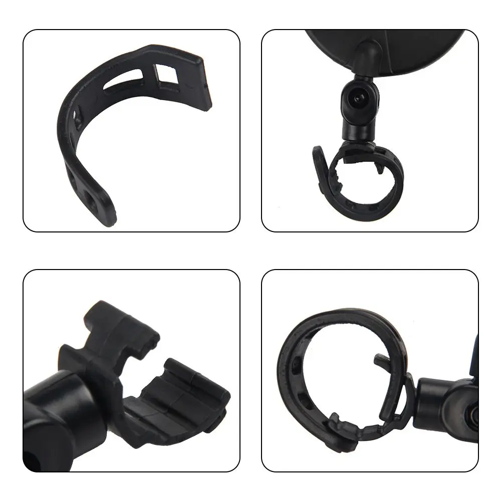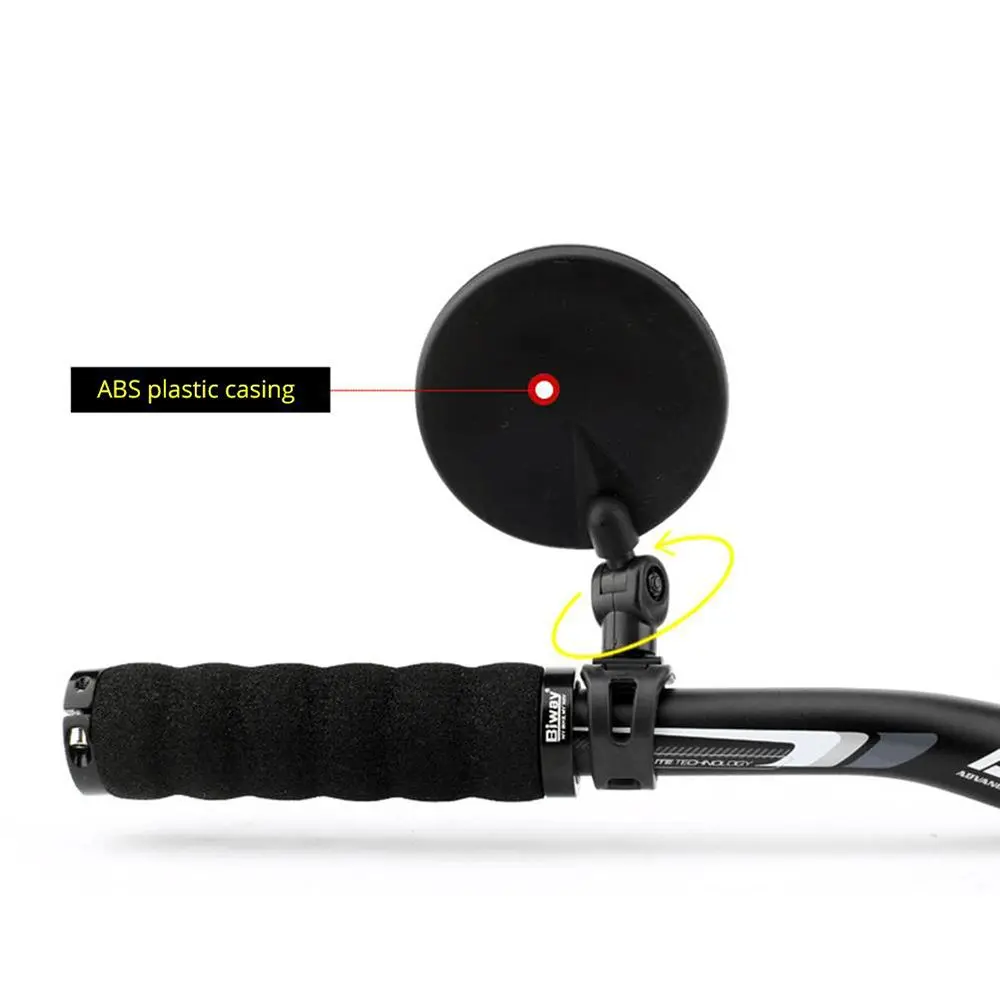 Nombre del producto: espejo retrovisor de bicicleta. Material del producto: plástico ABS + espejo reflectante. Tamaño aplicable: adecuado para manillar de 15-35MM/0,59*1,38 pulgadas. Ángulo de rotación: 360 grados. Lista de productos: 1 espejo retrovisor para bicicleta