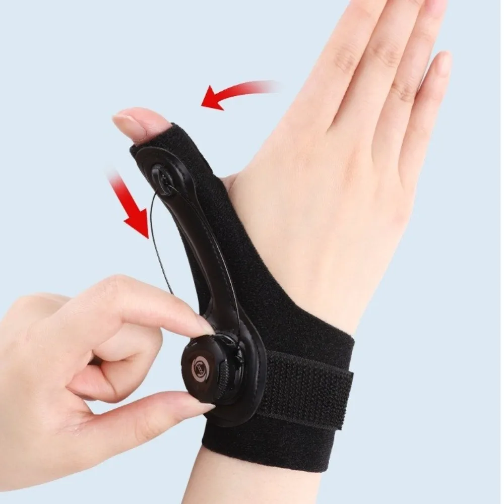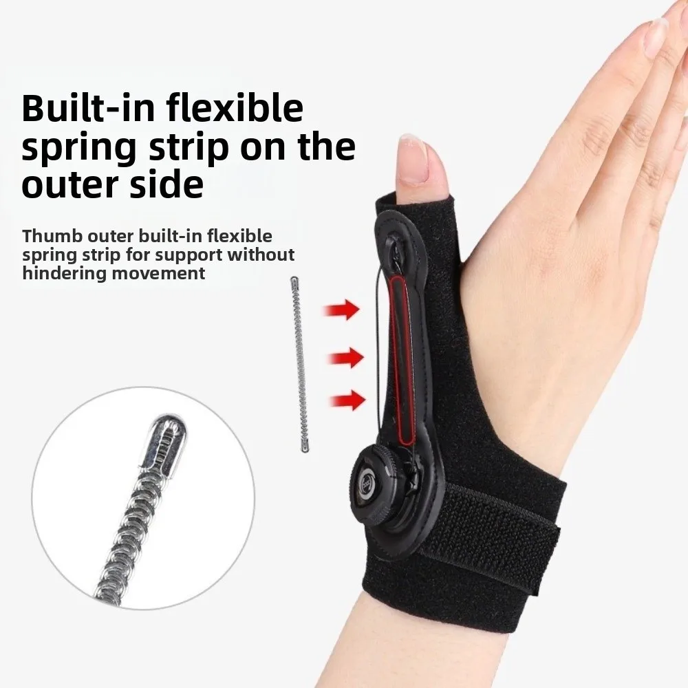 1.Knob Adjustment Design: Features a rotational press system with one-button lace-up to adjust thumb traction according to personal needs, providing optimal thumb & wrist stabilizer splint.