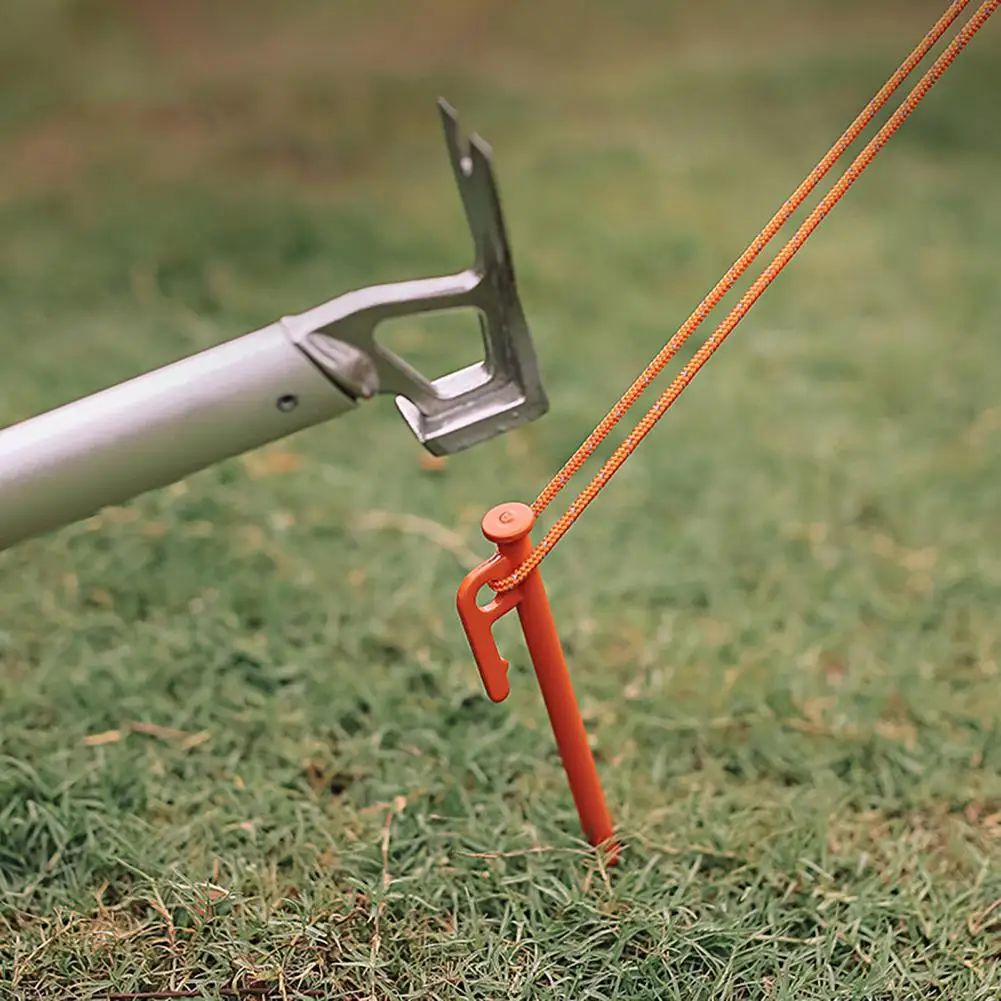 Un gancho en la parte superior, es más eficiente para asegurar su cuerda de viento, especialmente para los días de viento. Orificio conveniente para sujetar a su cuerda, también puede ayudar a sacar la estaca con su herramienta.