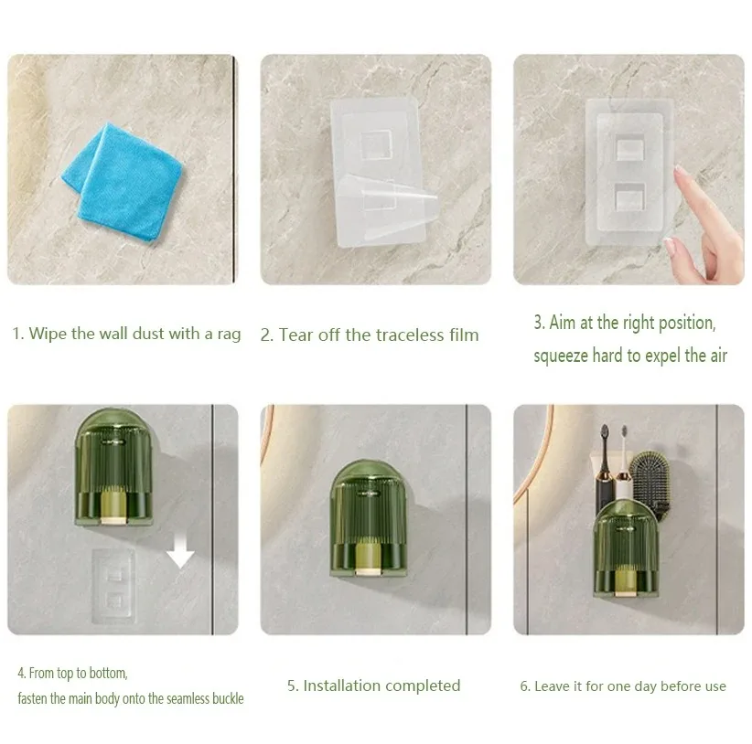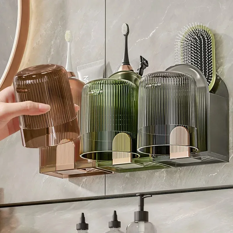 Estante de almacenamiento de 1 a 2 piezas, taza de cepillo de dientes, artículos de tocador, tazas, soporte de cepillo de dientes sin perforaciones, productos de plástico para gárgaras de baño, hogar