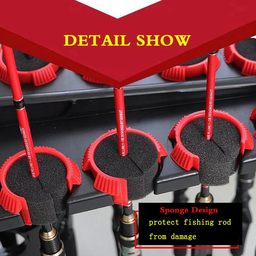 Propósito: almacenamiento conveniente, sin miedo a las cañas de pescar desordenadas, evitando rasguños y arañazos causados por apilar las cañas de pescar. Está bien colocado, hermoso y práctico.
