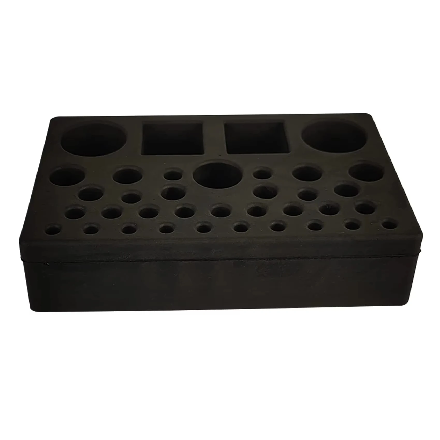 Caja para herramientas de espuma suave, muchos orificios de diferentes tamaños para colocar cosas como soportes para carretes, agujas para doblar y otras herramientas para atar moscas.