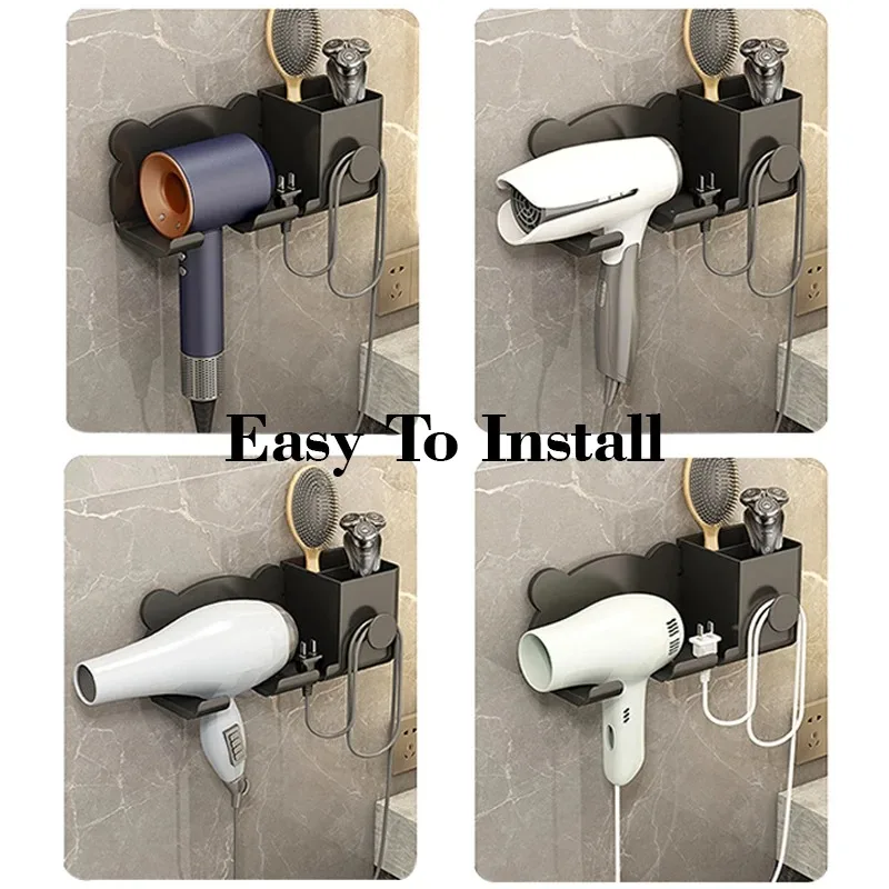 Estante de baño para secador de pelo, soporte colgante sin perforación, almacenamiento de ducha, alambre enrollado, estante de pared