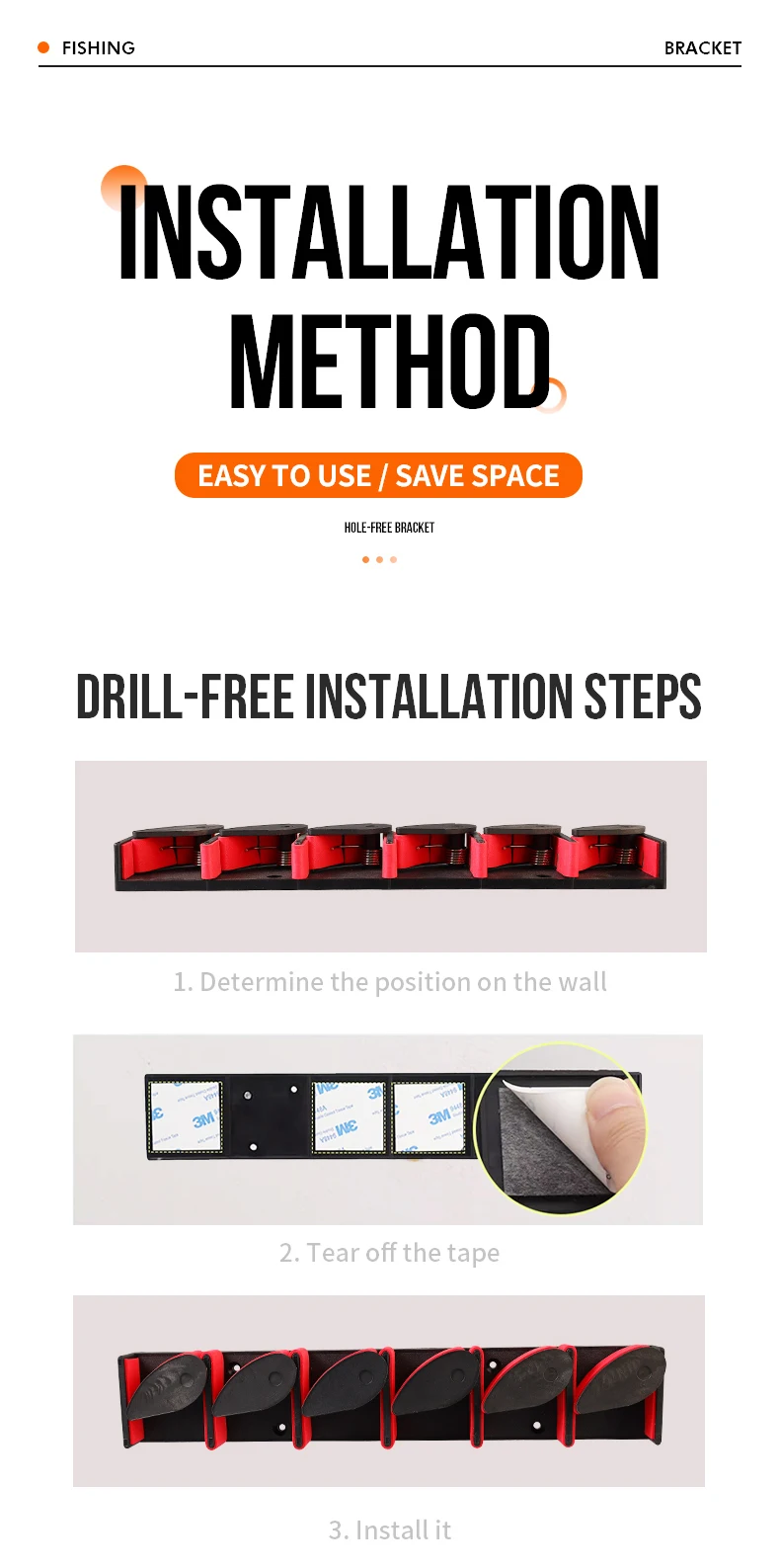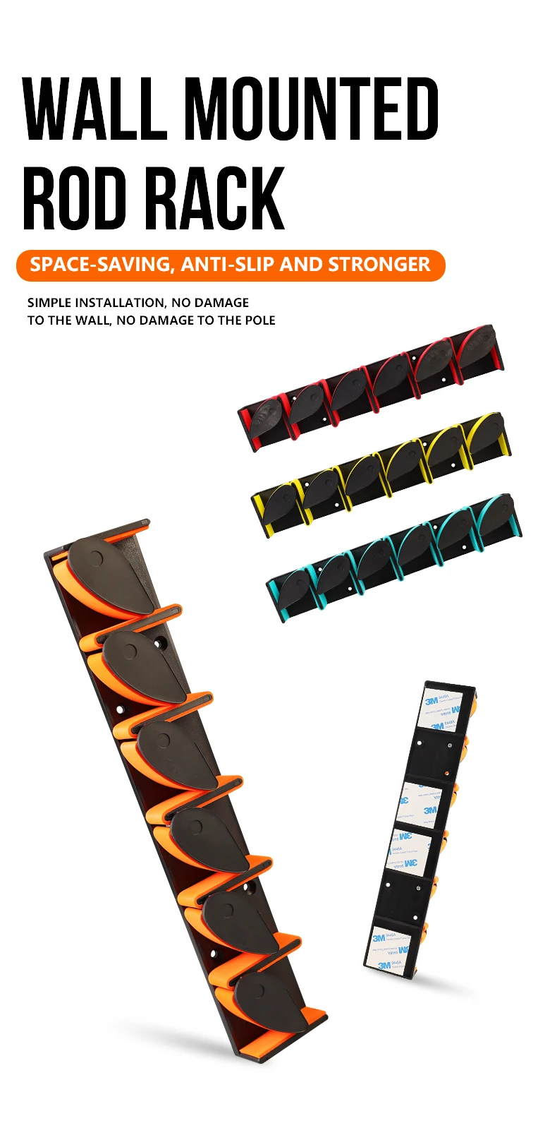 Este soporte para cañas se puede instalar fácilmente sin perforar agujeros, lo que garantiza que no dañe sus paredes ni aparejos de pesca.