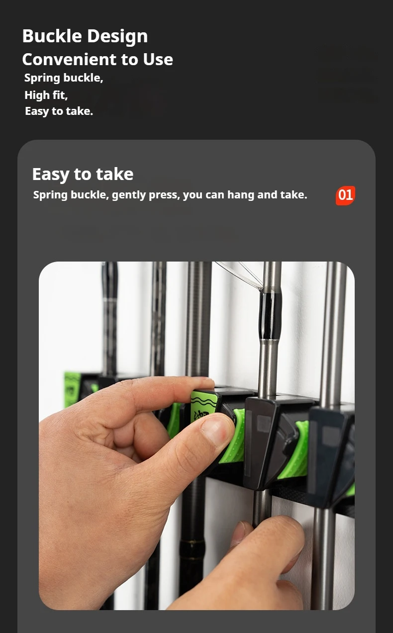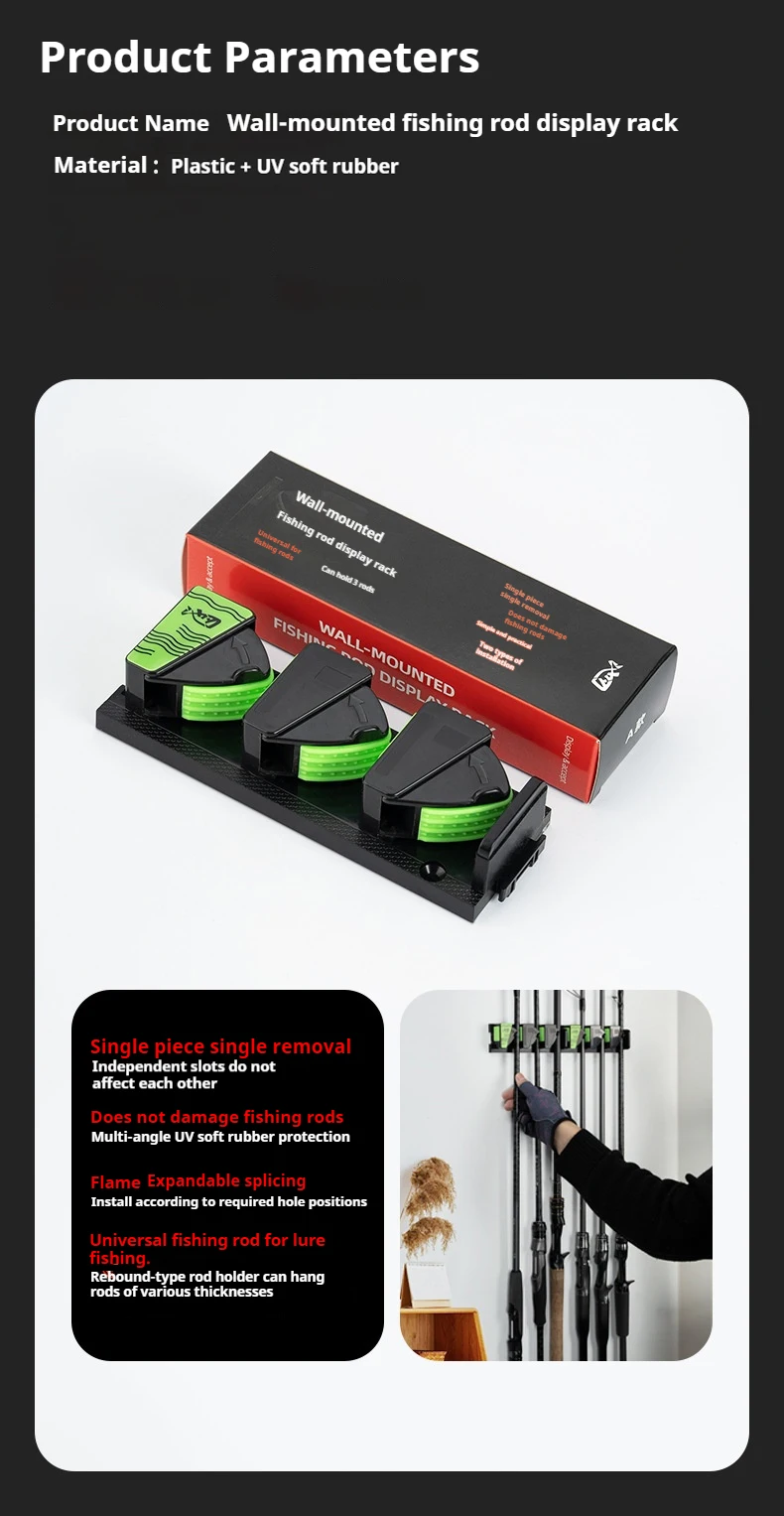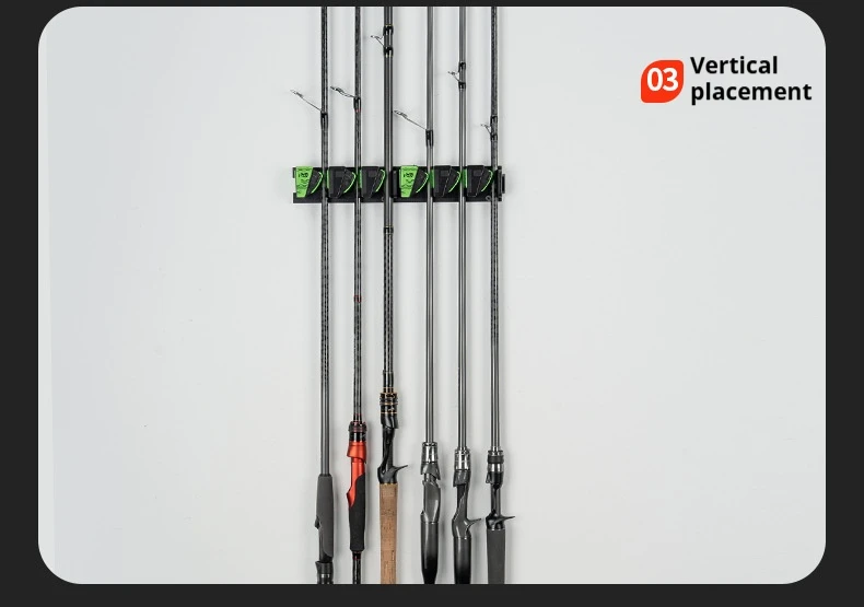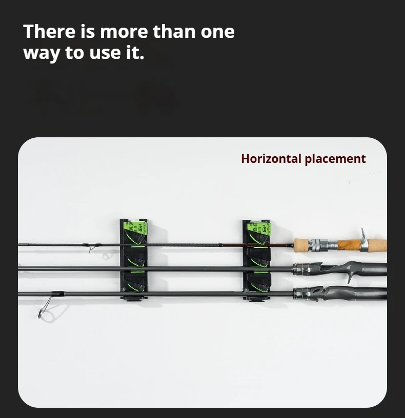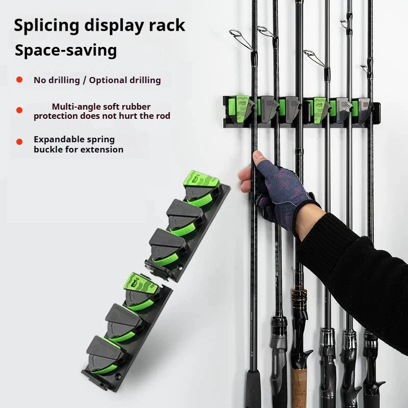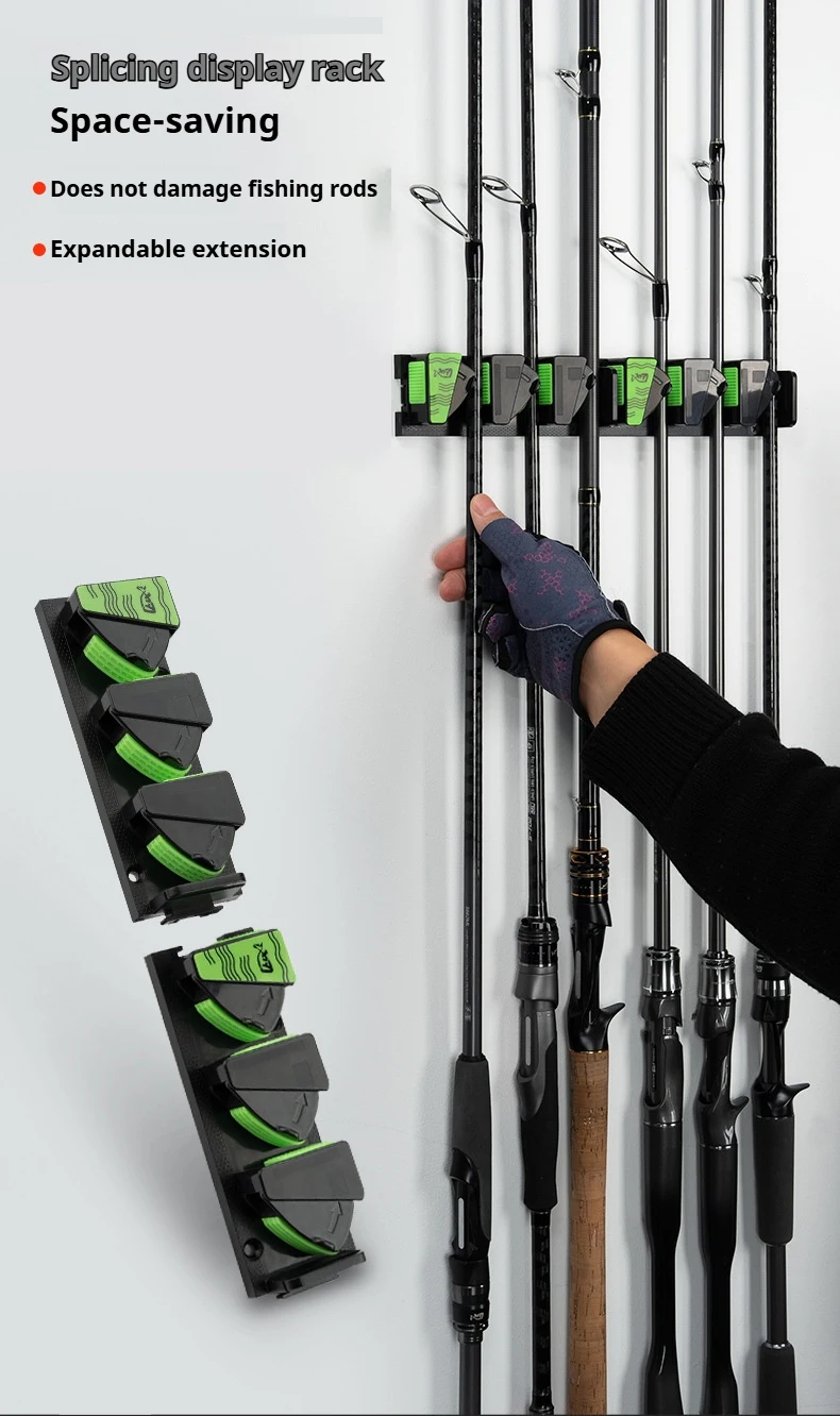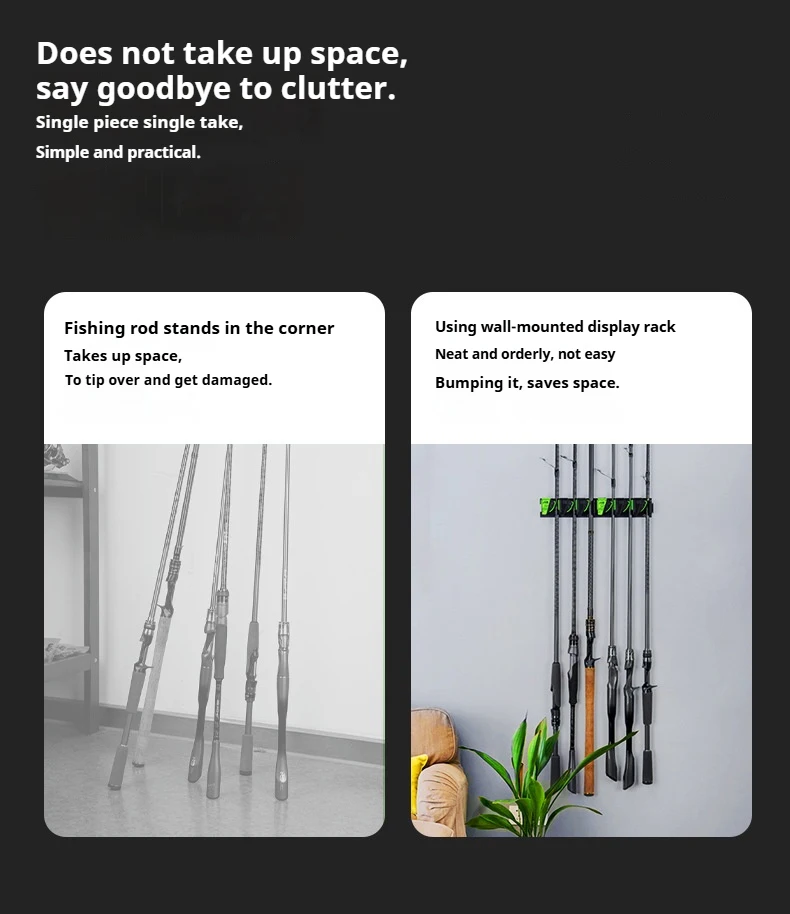 Estante de exhibición para caña de pescar montado en la pared, soporte para caña colgante para montaje en pared, instalación sin taladro | Almacenamiento de varillas de opción lista para taladros