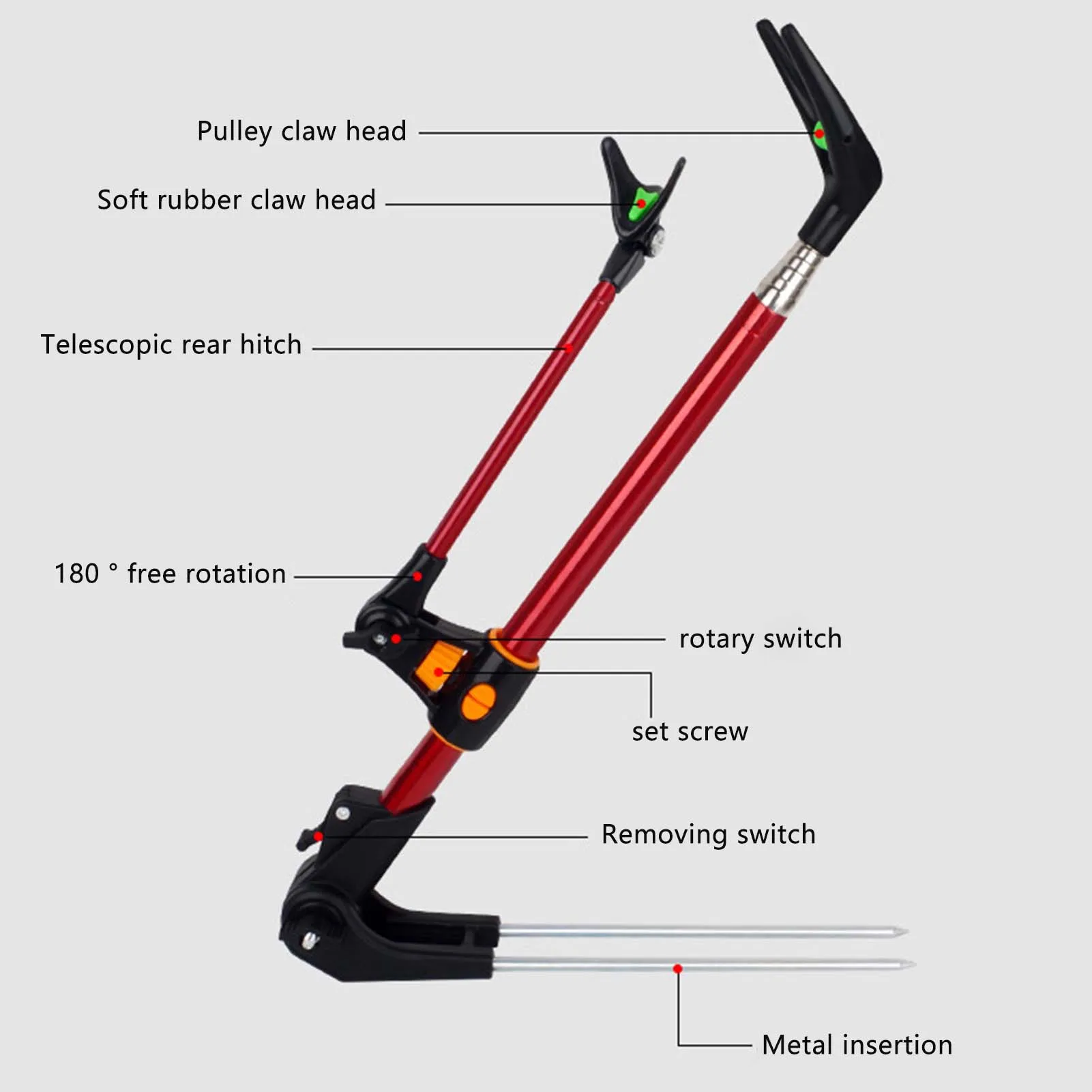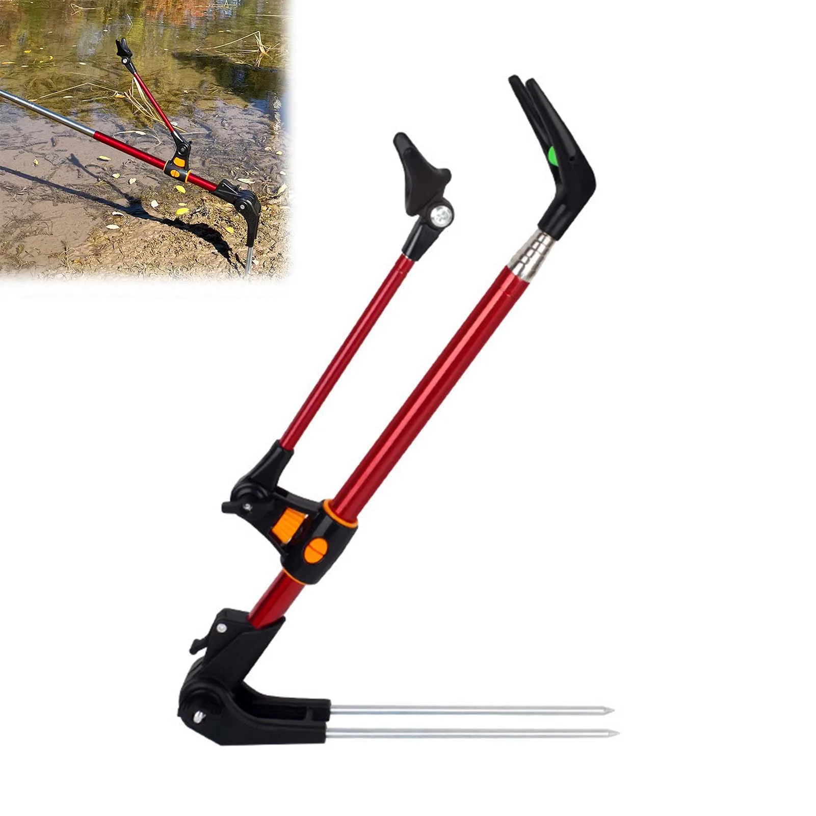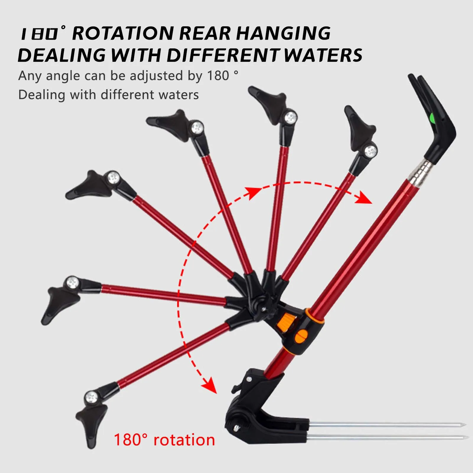 Diseño ajustable: el soporte ajustable para caña de pescar le permite personalizar la altura y el ángulo, asegurando un posicionamiento óptimo de la caña para cada aventura de pesca.