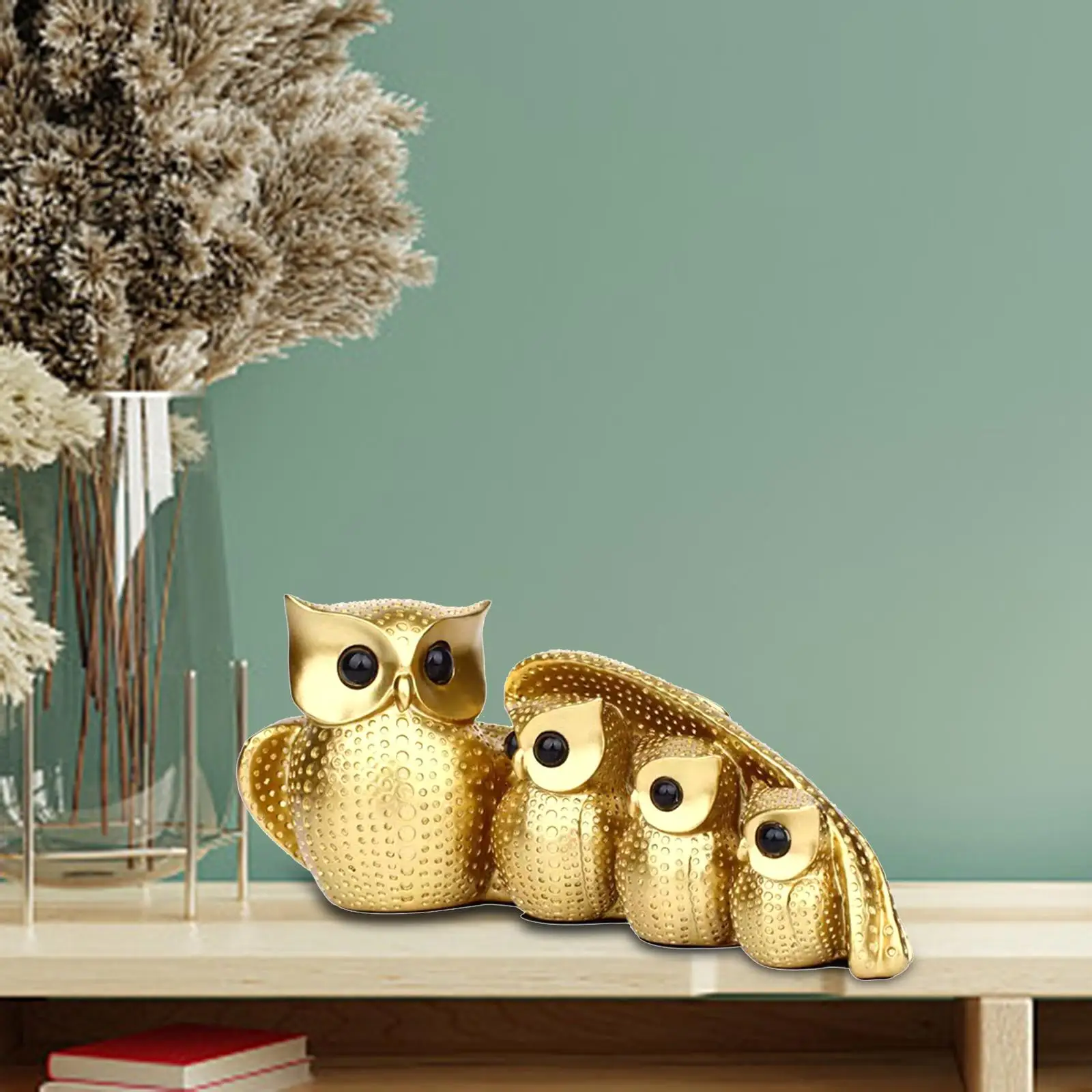 Estilo vívido: familia de cuatro estatuas de búhos, realista y linda, color dorado, aporta tranquilidad y calidez a tu hogar.