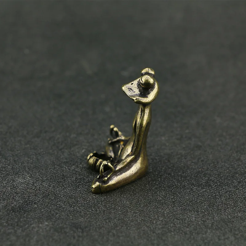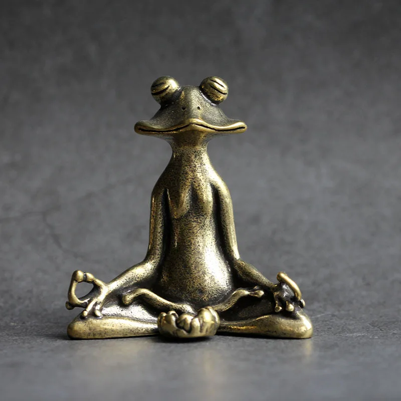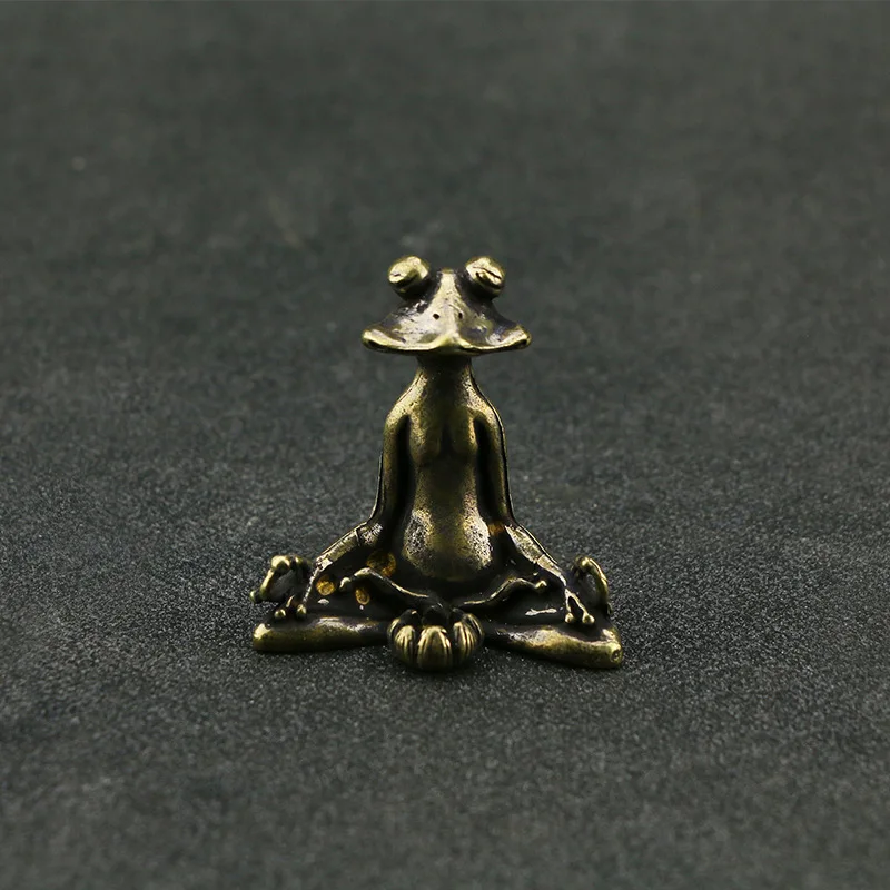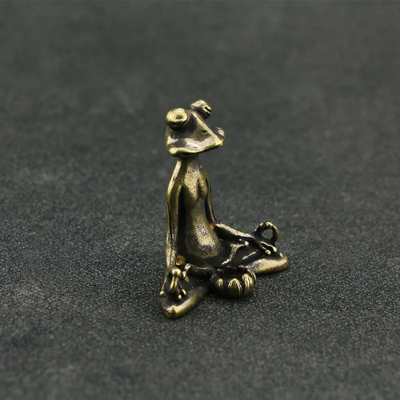 Estatua de rana budista Zen de meditación de latón Vintage, baratija, escultura de Animal de cobre, quemador de incienso, decoración de escritorio para el hogar, té y mascota