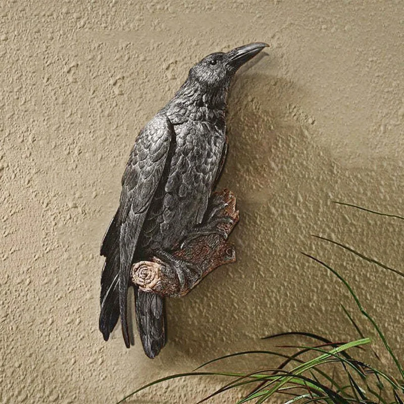 Estatua de resina de cuervo falso, escultura de cuervo de pájaro, cuervos al aire libre, decoración de Halloween creativa para jardín, patio, decoración de animales