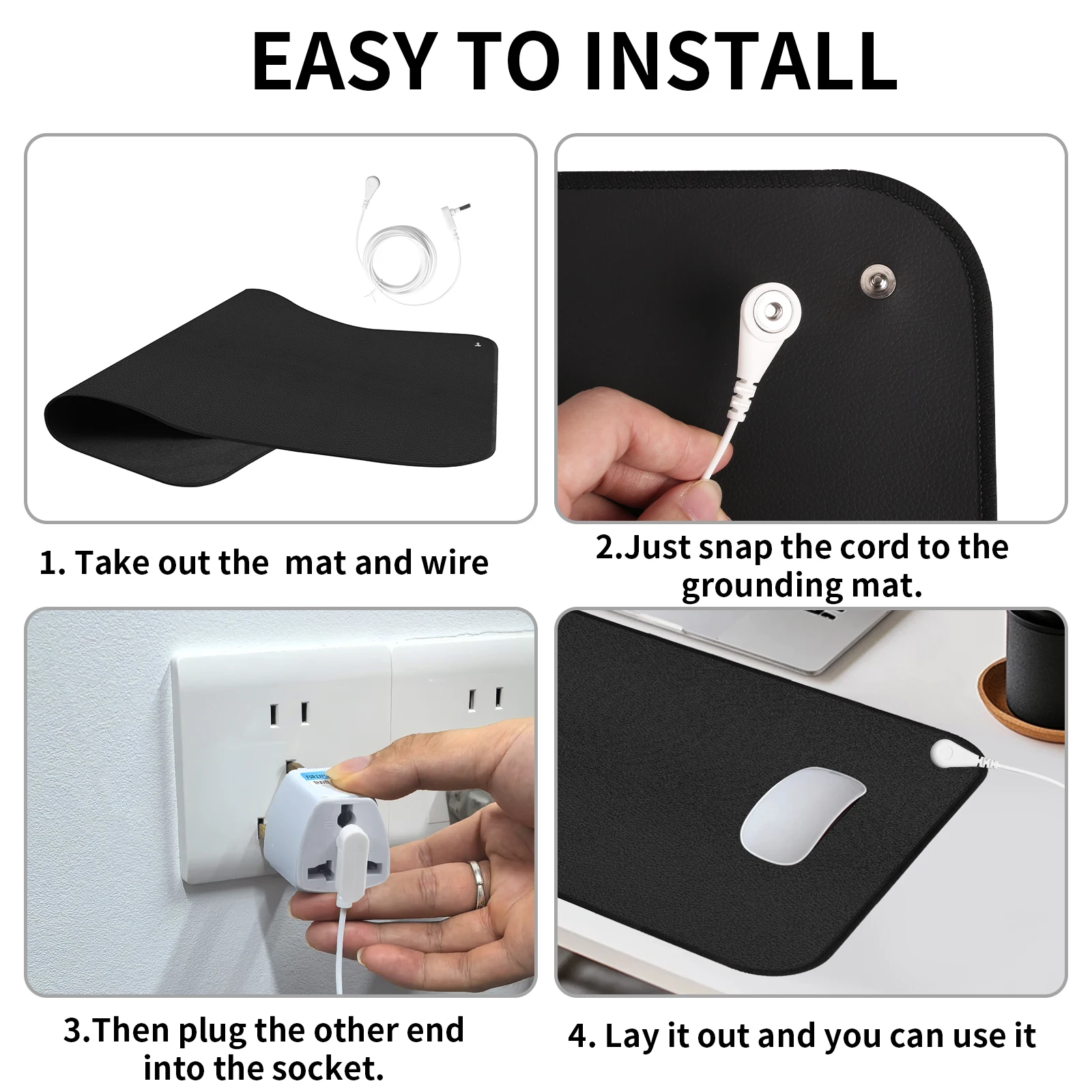 Funciona (lo probé con un probador de conexión a tierra). Sin embargo, el material es endeble, se ven los pliegues y no tiene fondo antideslizante. Aunque me gusta el tamaño. Aún así preferiría la estera de conexión a tierra oficial. Utilizo una varilla de conexión a tierra, ya que supuestamente es mejor que un enchufe. Sería bueno si pudieras elegir el rincón donde está el archivo adjunto.
