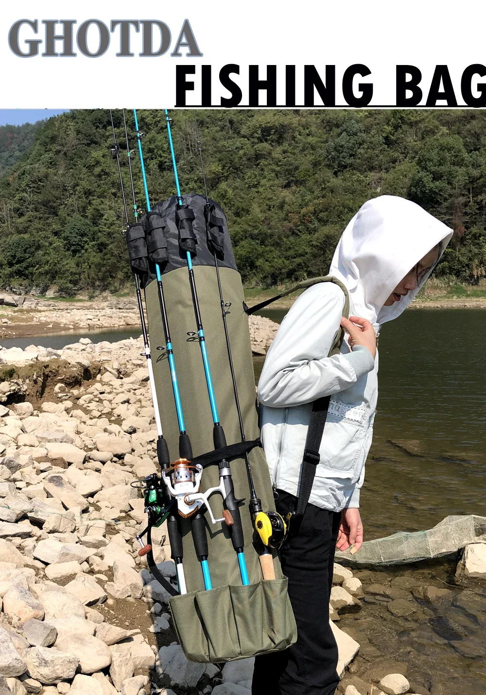 Funda multifunción de pesca con correa ajustable, bolsa de pesca, caña de pescar, bolsas de almacenamiento para caña de pescar al aire libre, Estuche de transporte de viaje