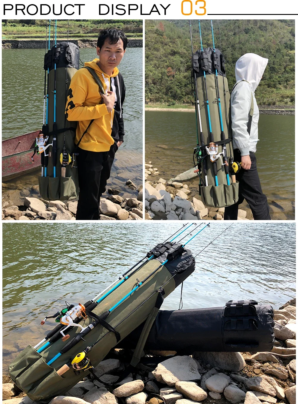-Hecho de tela Oxford duradera, resistente al agua y al desgaste.- Bolsa exterior para 5 cañas y carretes, un bolsillo lateral y un gran compartimento interior.-Gran capacidad y correas ajustables, cómodas y portátiles.-Maravilloso compañero para los pescadores.