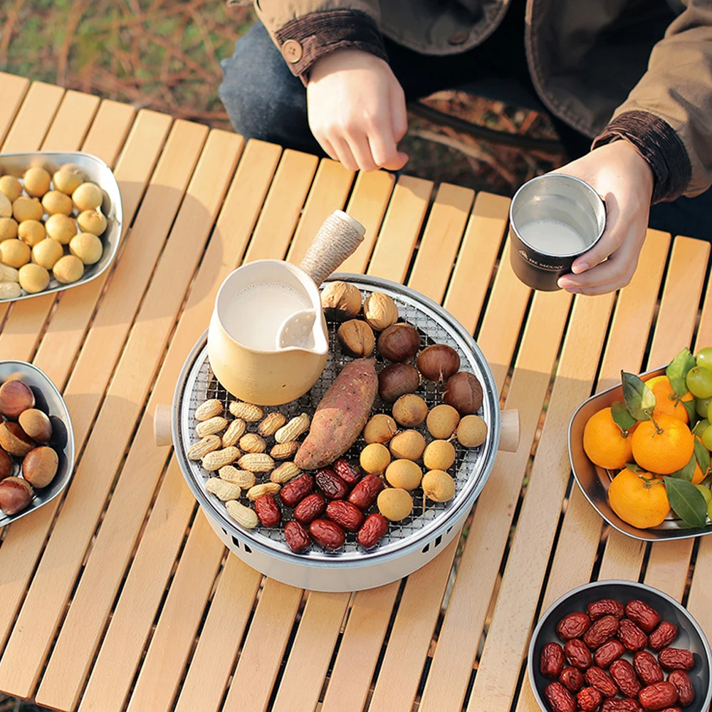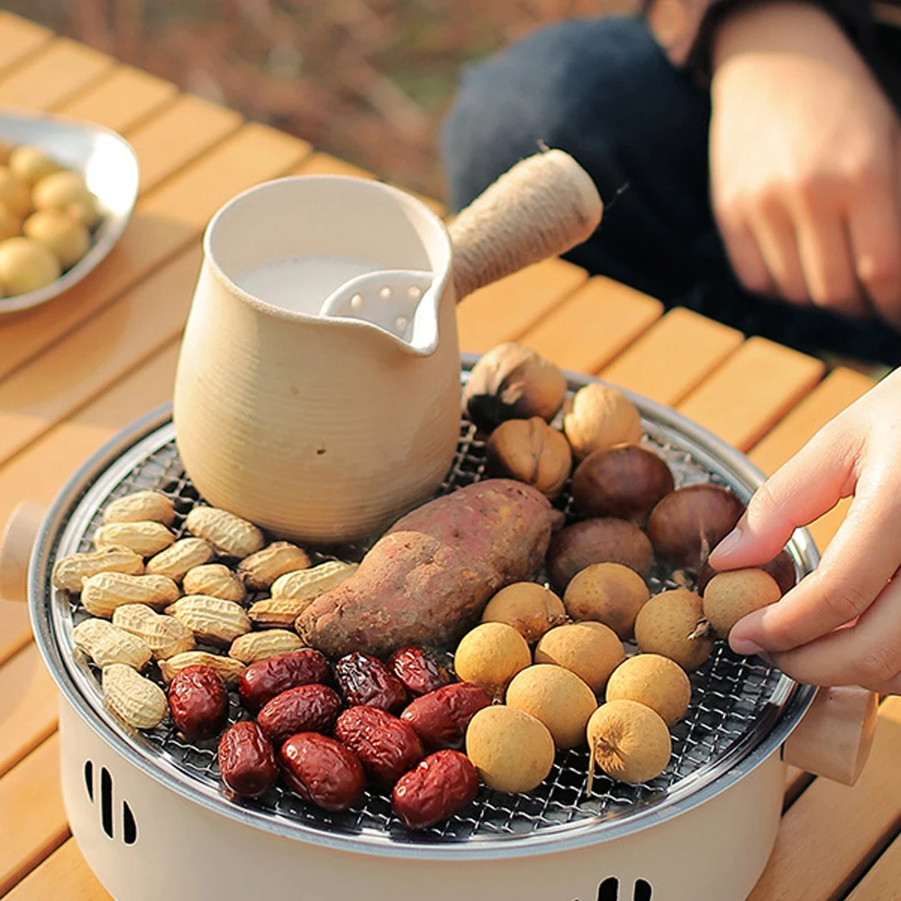 Diseño fácil de usar:Hemos considerado cuidadosamente cada detalle para mejorar su experiencia. La parrilla viene con un práctico elevador de parrilla, lo que garantiza que pueda manejar la parrilla de forma segura sin quemarse. También permite rellenar fácilmente el carbón durante la cocción. La estufa cuenta con mangos de madera maciza en ambos lados para un movimiento conveniente.