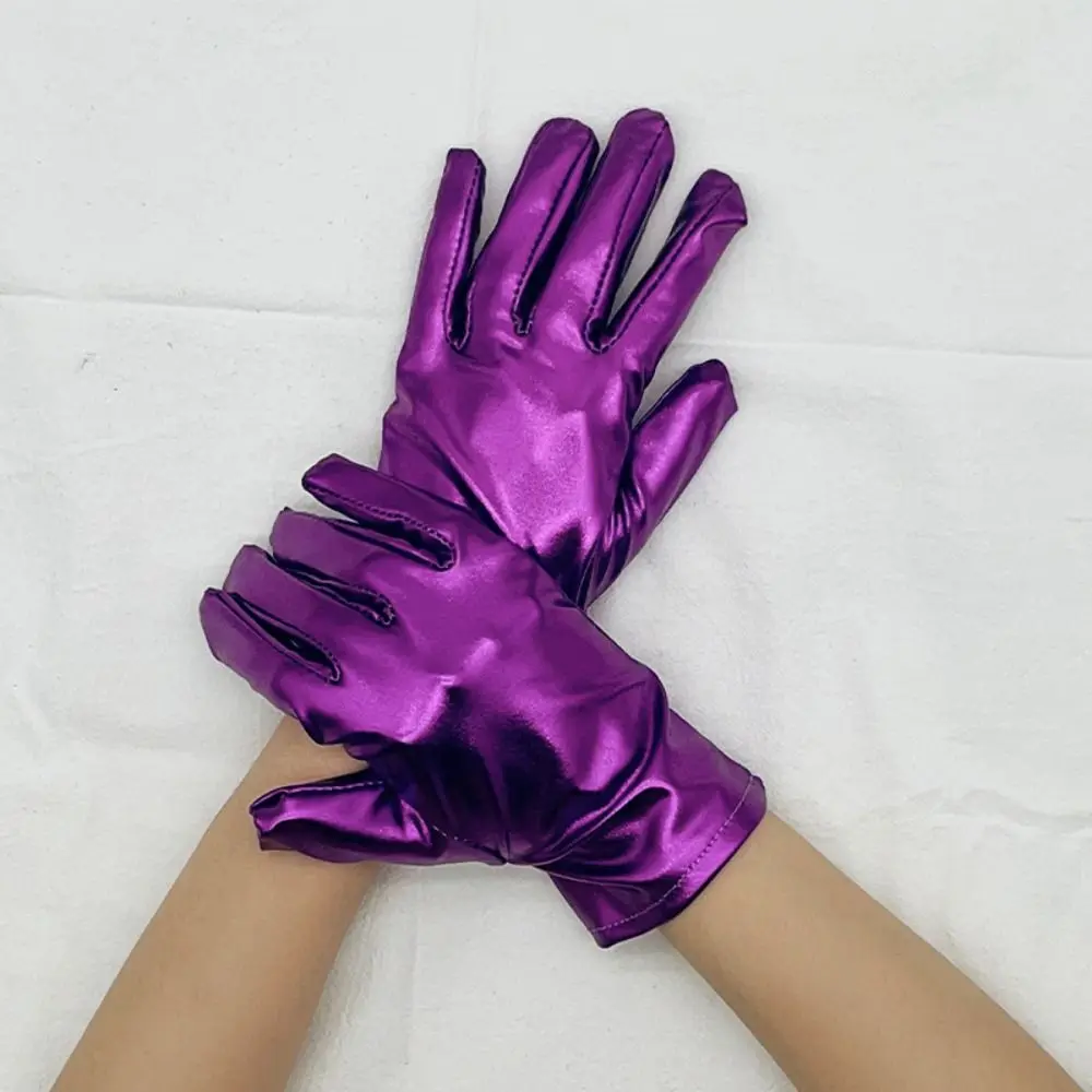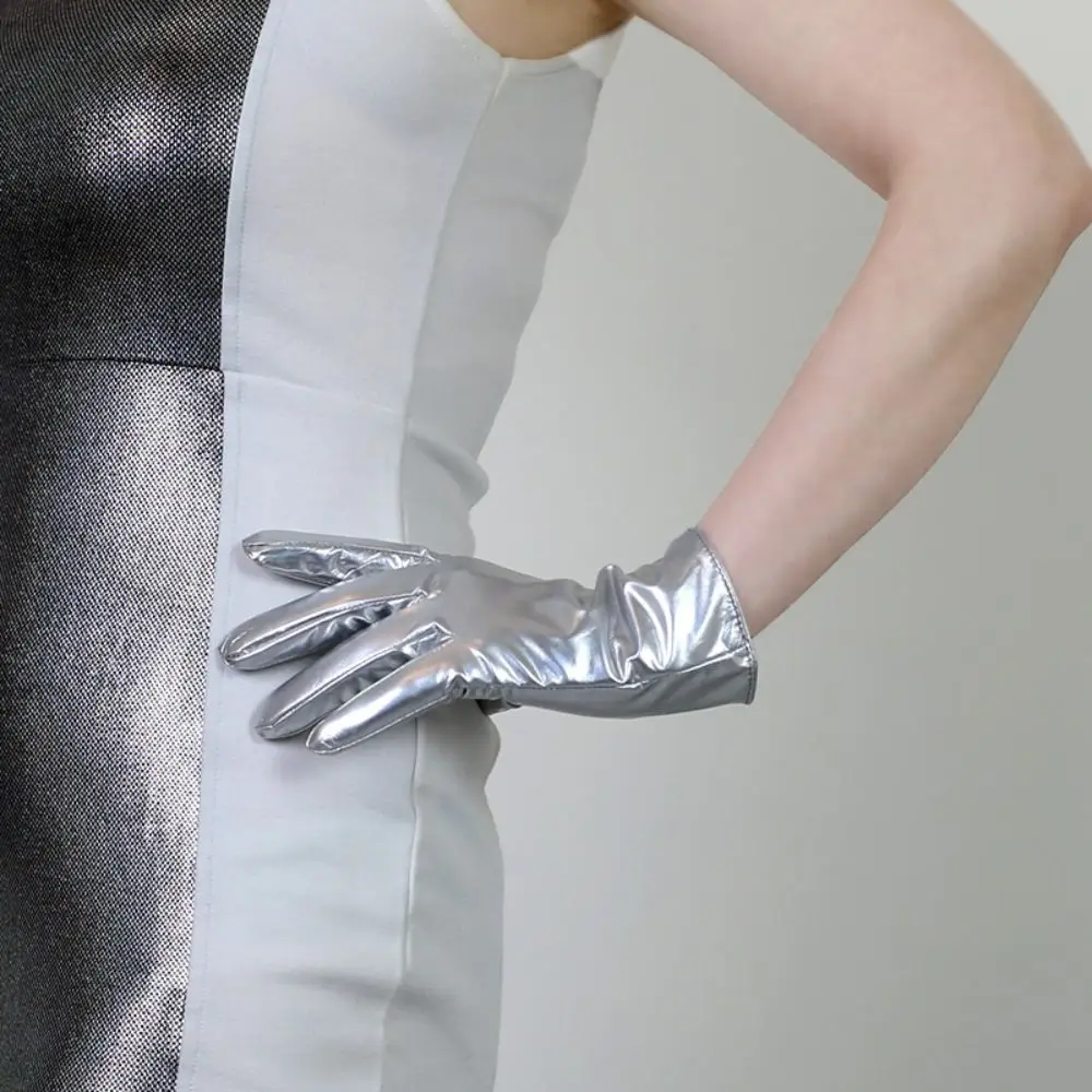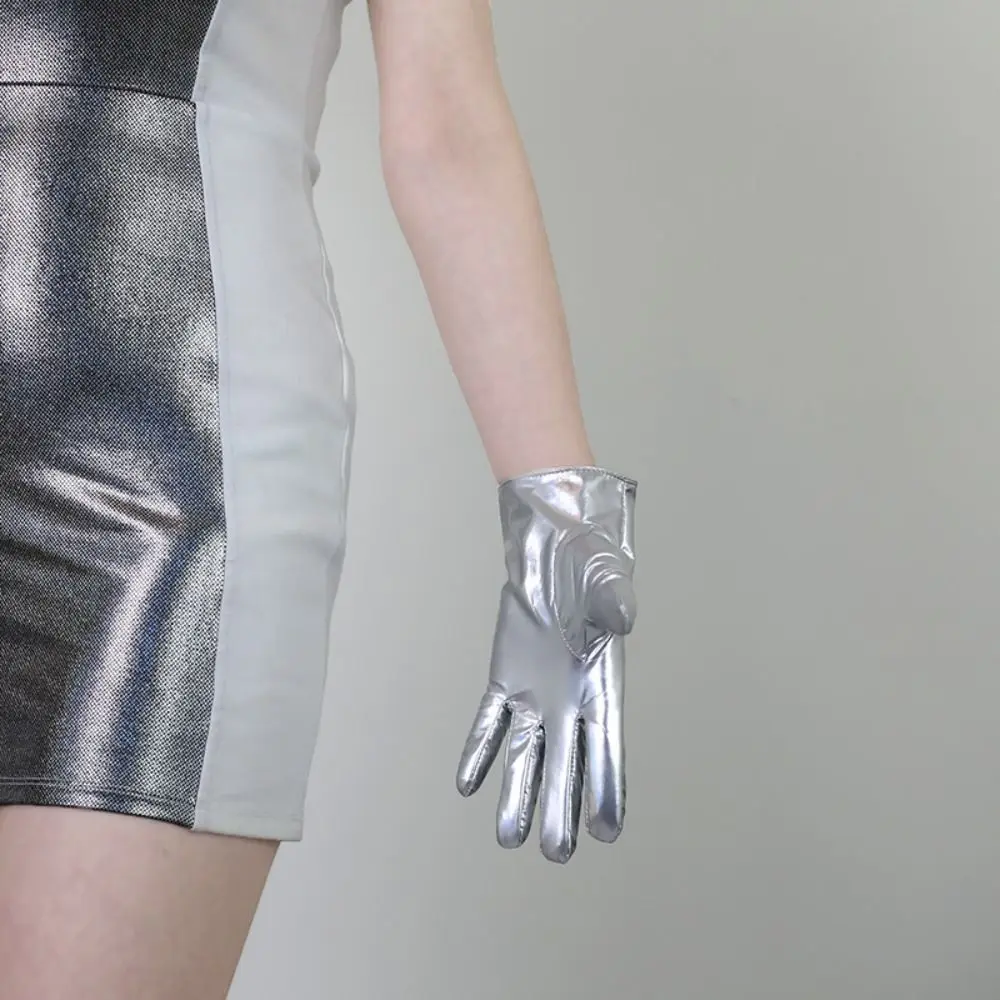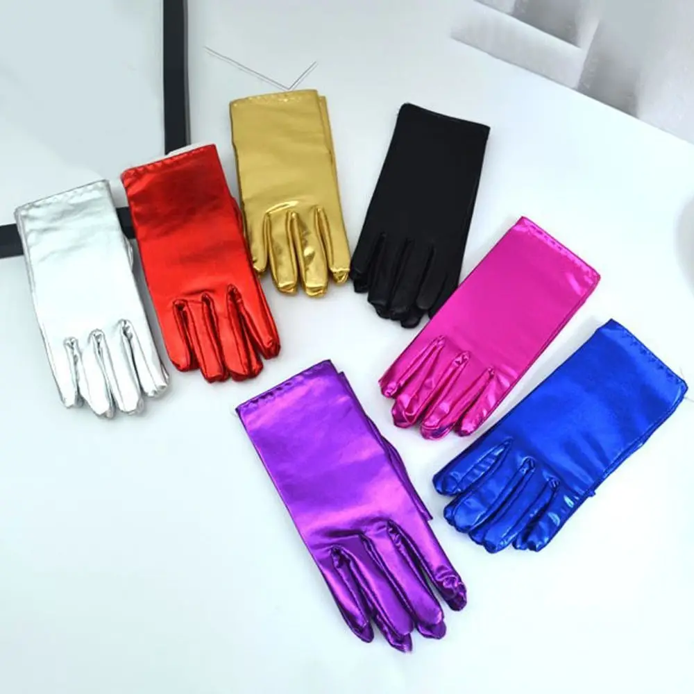 Guantes de cuero cortos de moda, guantes para actuaciones en escenario, guantes de etiqueta de cuero brillante