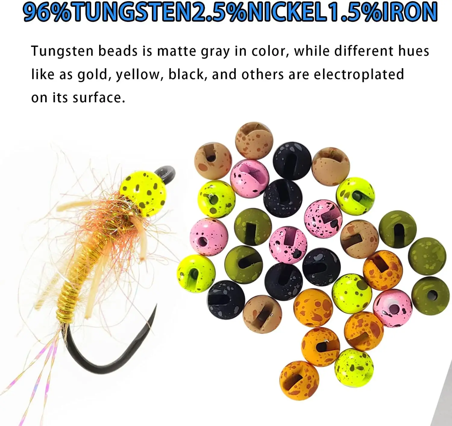 100% material nuevo, no reciclado. 96% tungsteno, respetuoso con el medio ambiente. Se hunden rápidamente y llevan la mosca hasta donde están los peces.