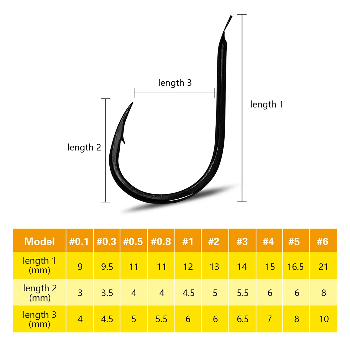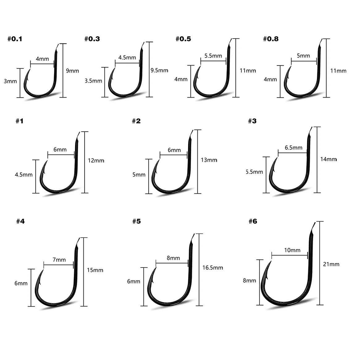 Variedad de tamaños: el anzuelo Chinu Fishhook viene en ocho tamaños diferentes: #0,1, #0,3, #0,5, #0,8, #1, #2, #3, #4, #5, #6. Cada paquete contiene 12 ganchos.