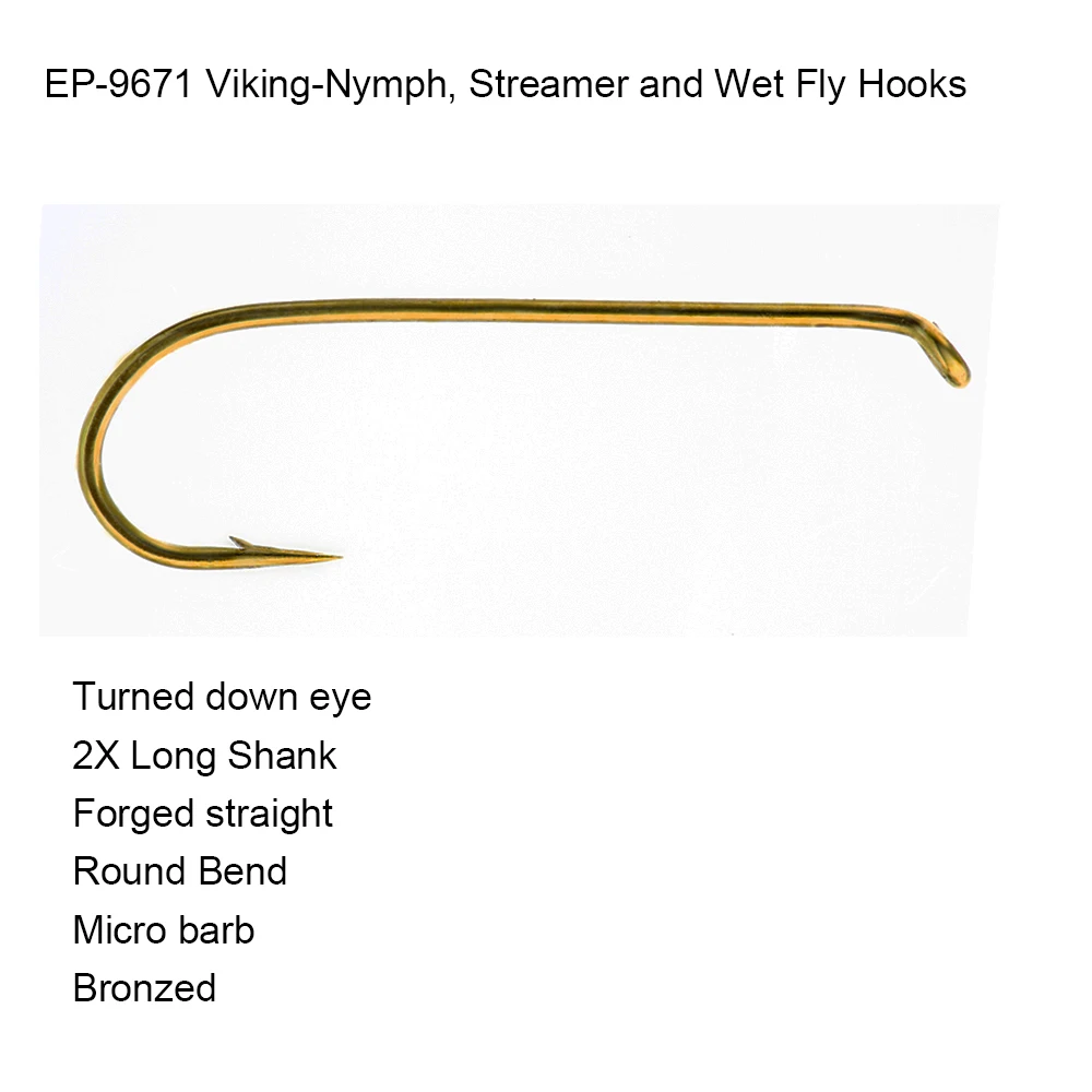 Eupheng 100 Uds. EP-9671 serpentina vikingo Nymph y micropúa húmeda ganchos clásicos de pesca con mosca gancho de remolque gancho de pesca de curva redonda