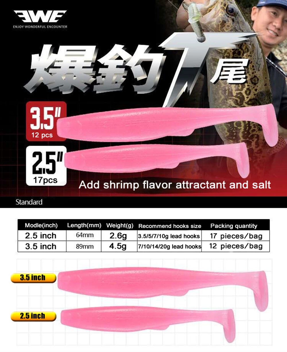 EWE 2.5/2.7/3.5inch T tail Soft bait 2.6/4.5g add shrimp flavor and salt Wobbler Fishing Lure tackle for Trout Pike Bass shad fish