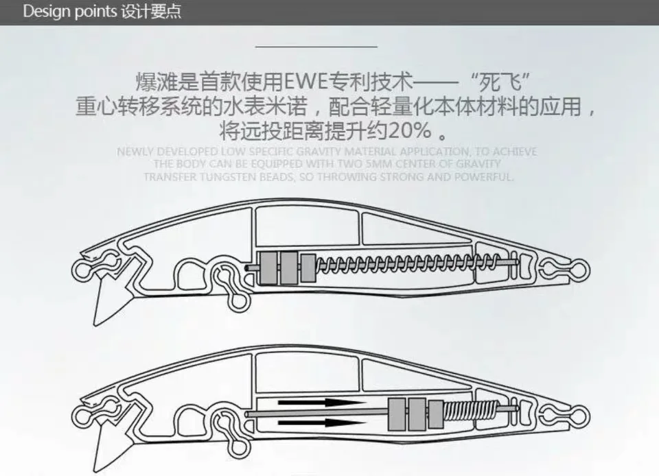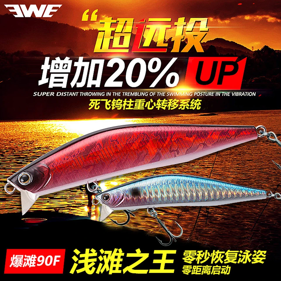 EWE Baotan-señuelo de pesca de pececillos flotantes de aguas poco profundas, Sistema de Vuelo muerto Wobbler de tiro largo, 90mm/12,5g, cebo falso para lubina, 90F