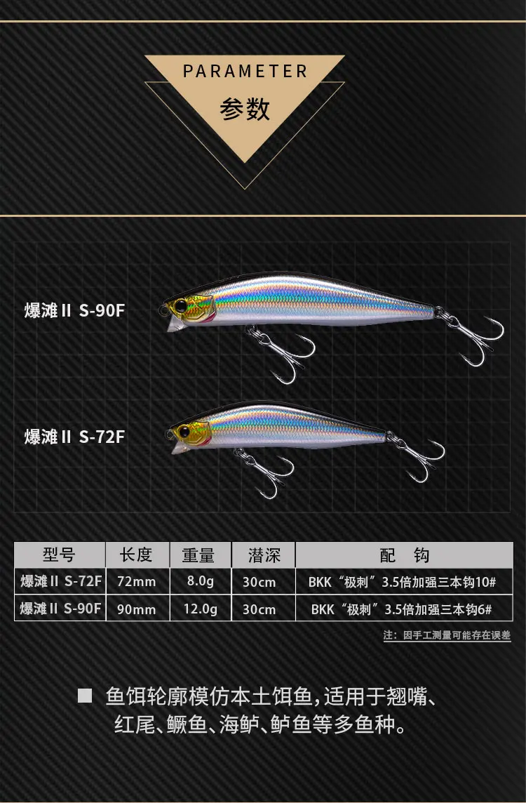 EWE Baotan2 señuelo de pesca de pececillos flotantes de aguas poco profundas, cebo falso Wobbler Artificial Isca de 8g/12g, 72mm/90mm