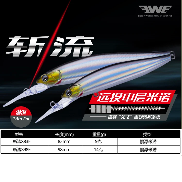 EWE, producto nuevo de verano, flujo de corte, nivel medio "Dead Fly", lanzamiento súper largo alcance, Mino S83F-9g/S98F-14g, punto multicolor