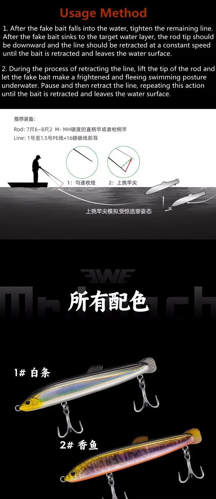 EWE Qiuge-señuelo de pesca de lápiz que se hunde, 12g/14g/18g/21g, Wobbler Artificial de tiro largo, Loach biomimético, cebo duro falso de lubina de mar, nuevo
