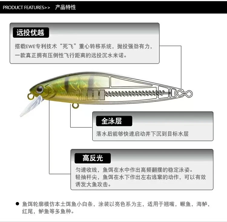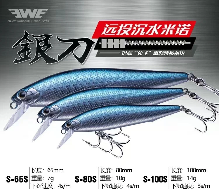 EWE-señuelo de pesca de pececillo hundido, cuchillo plateado, tiro largo, 7/10/14/18g, capa de natación completa, cebo duro Wobbler Artificial de 65/80/100mm