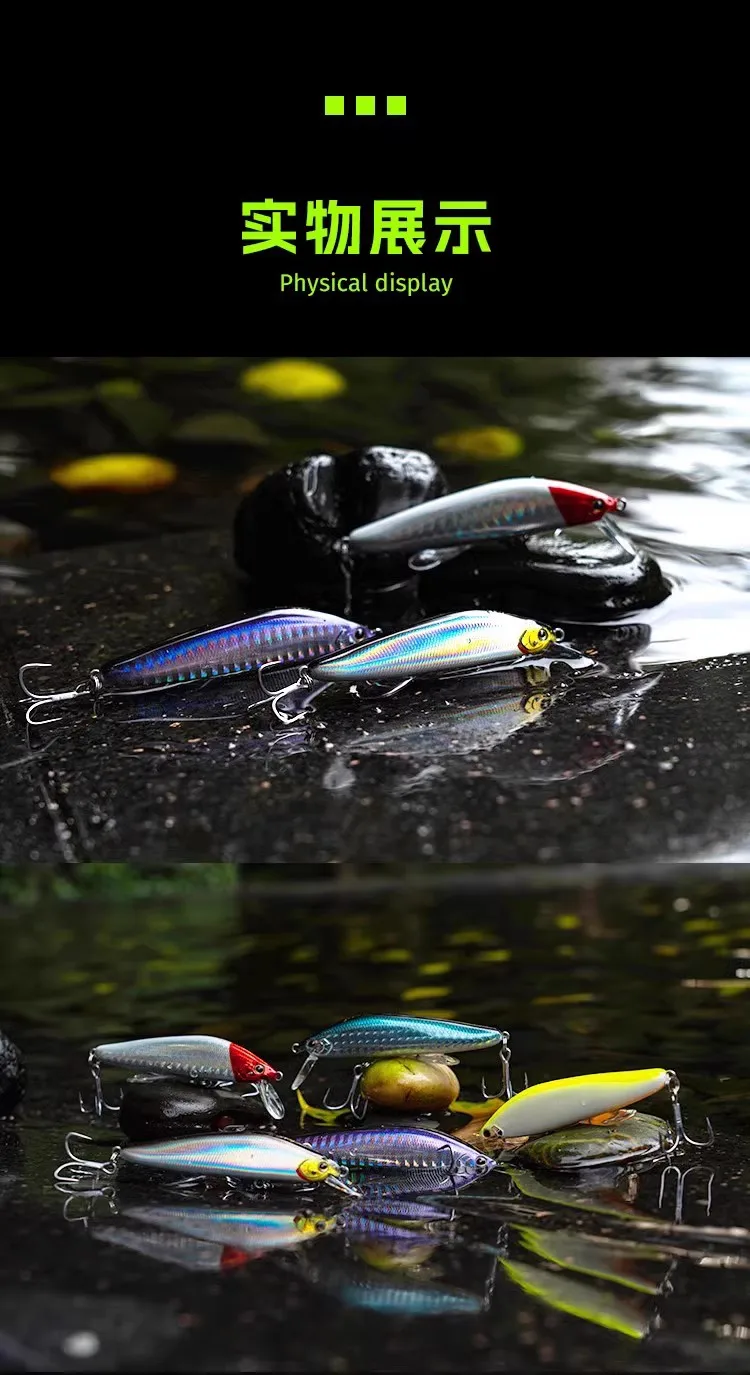 Señuelo de pesca con estampado 3D, pintura de pececillo, tablero de buceo corto de hundimiento lento, señuelos artificiales, bolas ruidosas, lote de 5 piezas en oferta