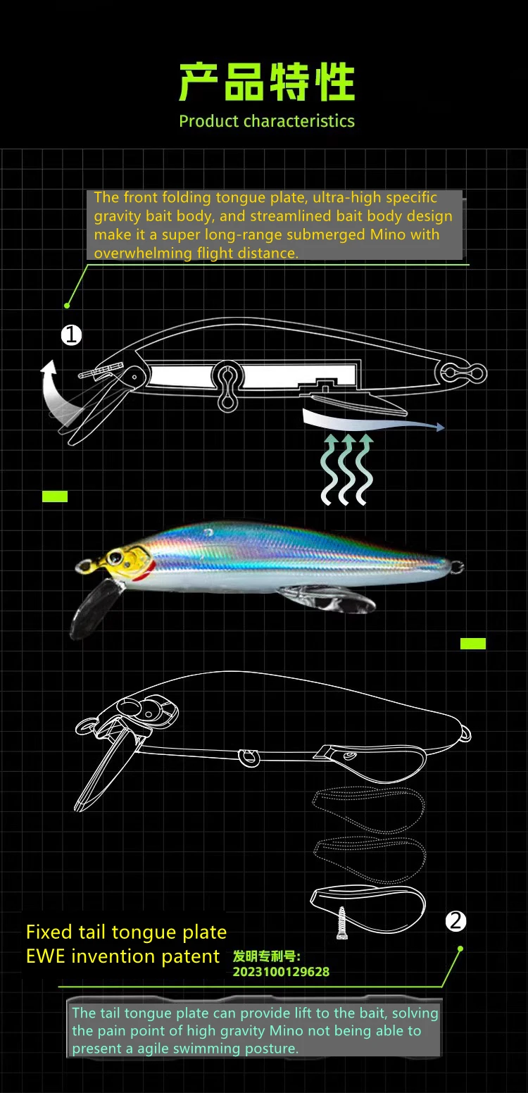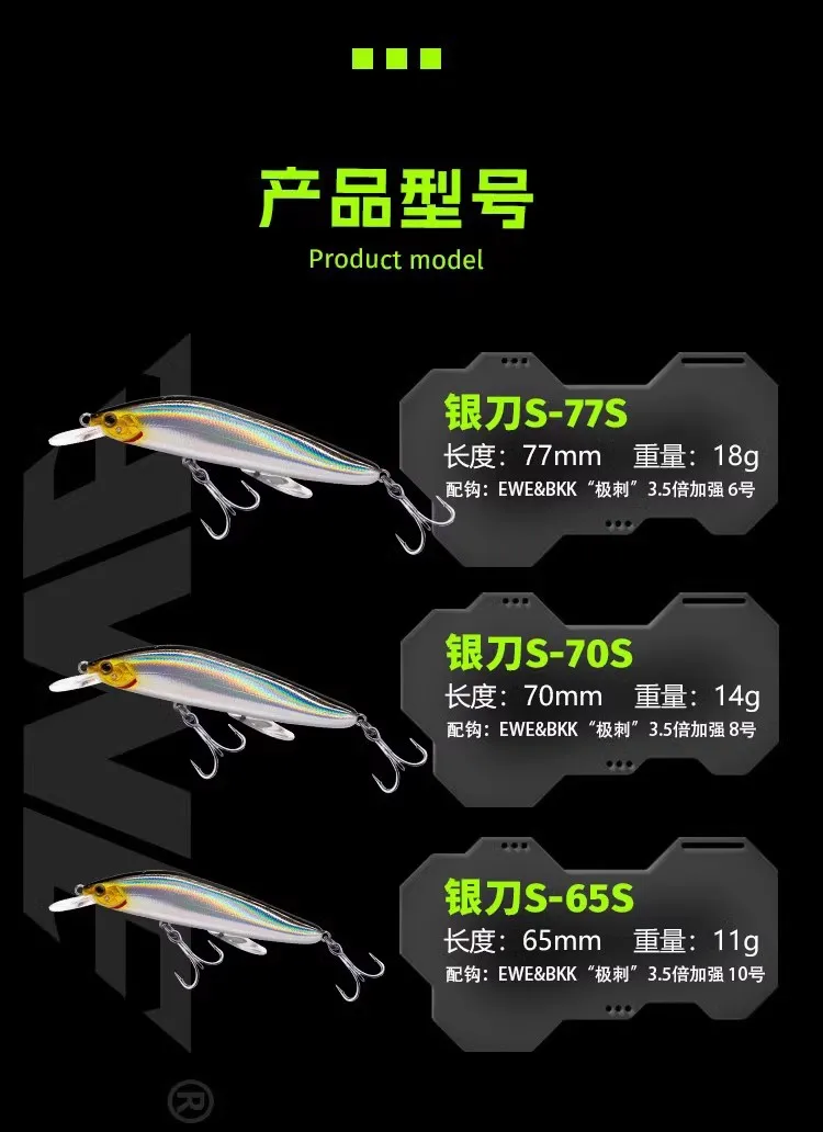 EWE-señuelo de pesca de pececillos, cebo duro Artificial de alta gravedad específica, cuchillo plateado Feiguotou de 65/70/77mm, 11g/14g/18g, nuevo
