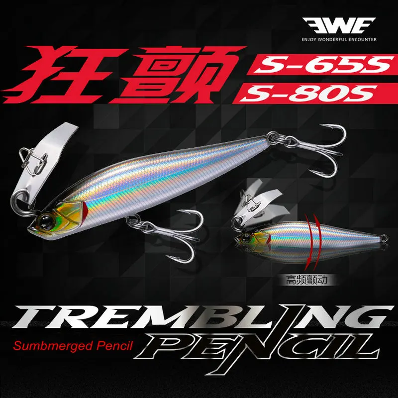 EWE-Señuelos de pesca de lápiz de hundimiento de tiro largo, vibración de alta frecuencia, cebo duro, Wobbler, Kuangchan, 65mm, 10g, 80mm, 14g