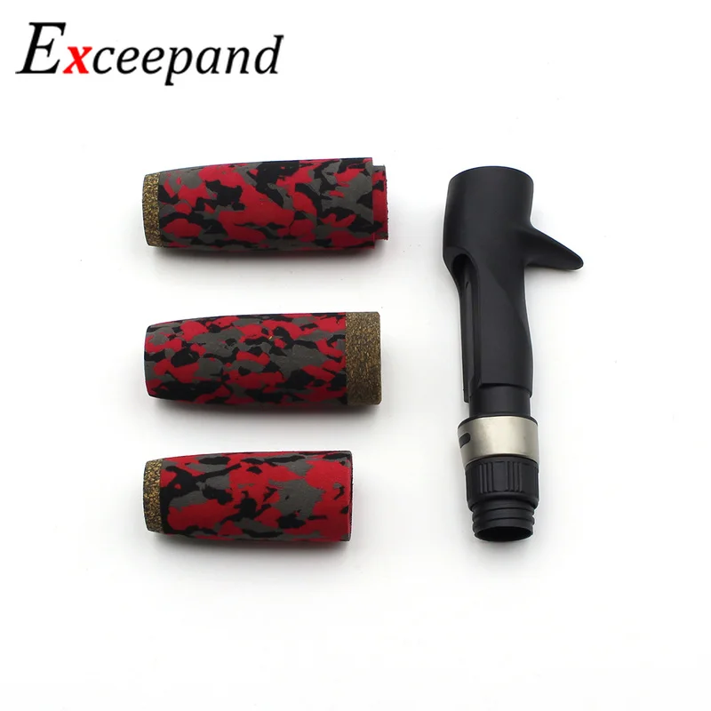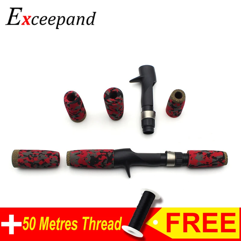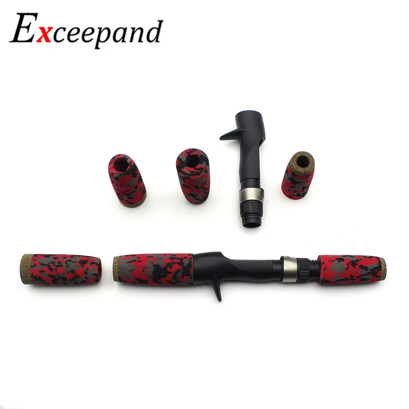 Exceepand-caña de pescar fundida de camuflaje rojo, Asa giratoria, agarre dividido de construcción con asiento de carrete