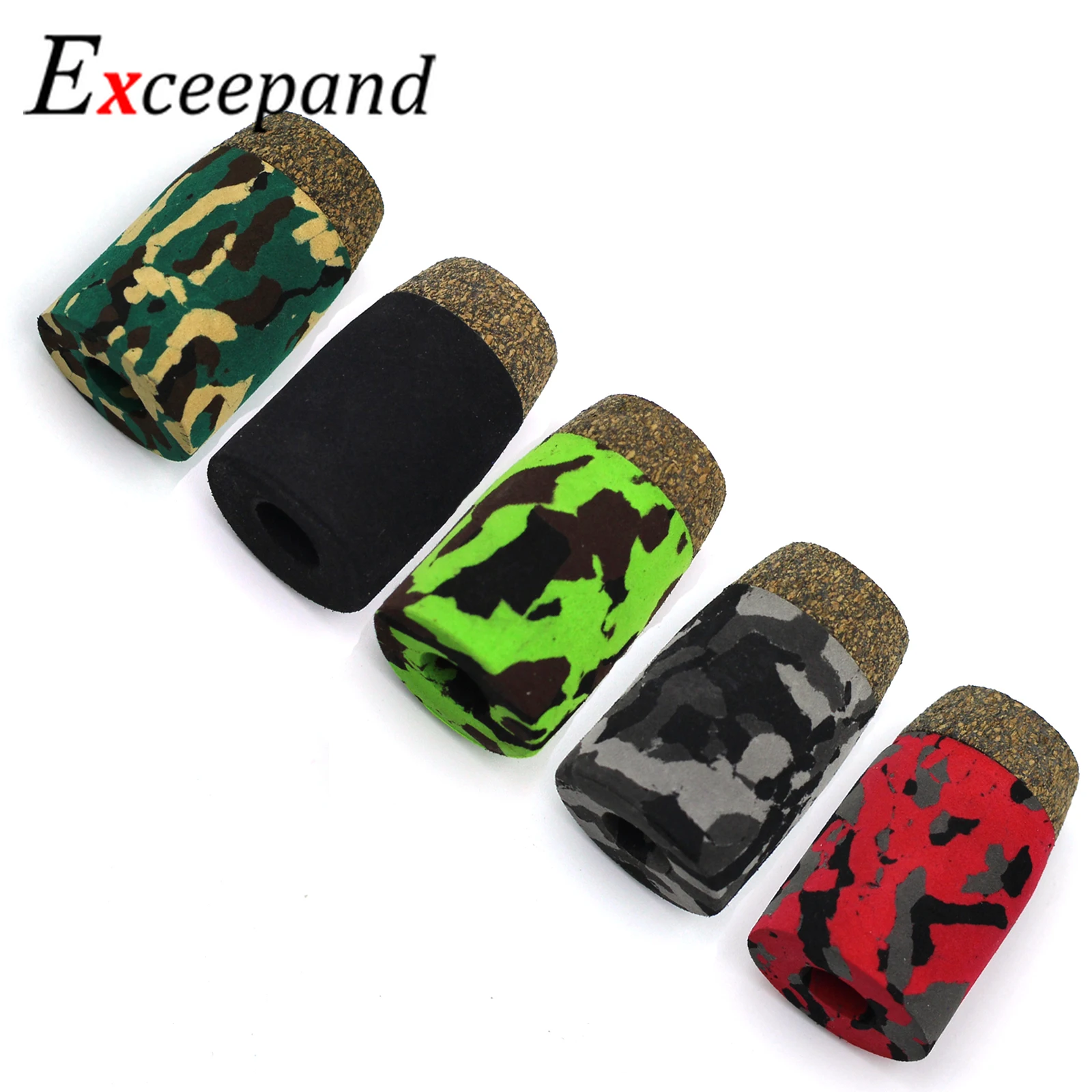 Exceepand 5-Tapas de culata EVA CAMO de 42mm, mango de caña de pescar giratorio, mango de agarre para repuesto de poste DIY o componentes de reparación