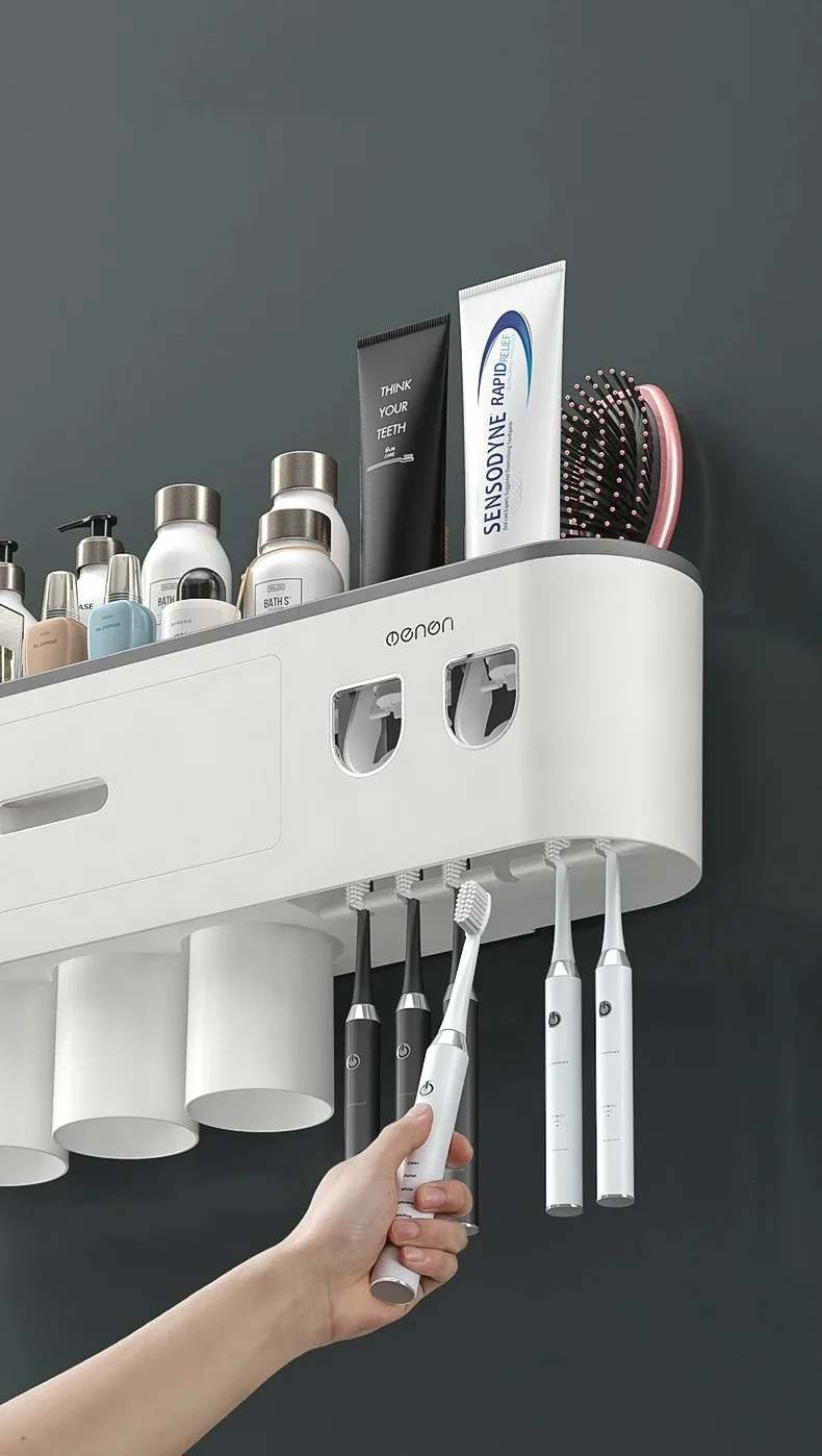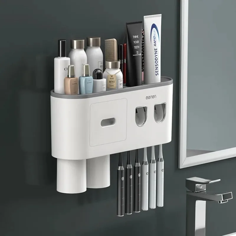 Exprimidor automático de pasta de dientes para el hogar, 1 piezas, taza para hacer gárgaras, vasos sin perforaciones, soporte para vaso de cepillo de dientes, estante de almacenamiento de productos de baño
