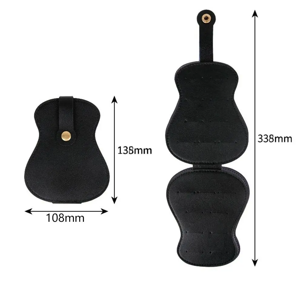 Name: Guitar Pick Bag Material: PU Leather Color: Blue/Green/Black/orange Folded size: 138x108mm(5.43x4.25in) Unfolded size: 338x108mm(13.31x4.25in) compact and exquisite, making it easy to carry with you. Allowing you to carry 18 picks at once, you can choose from four colors to better protect your guitar paddles. It can be given as a gift to music enthusiasts around you. Package Included: 1Pc* Guitar Pick Bag Note: -Due to hand measure, the size may have 0.5-1 cm error -Due to Different Monitor, the color may have difference