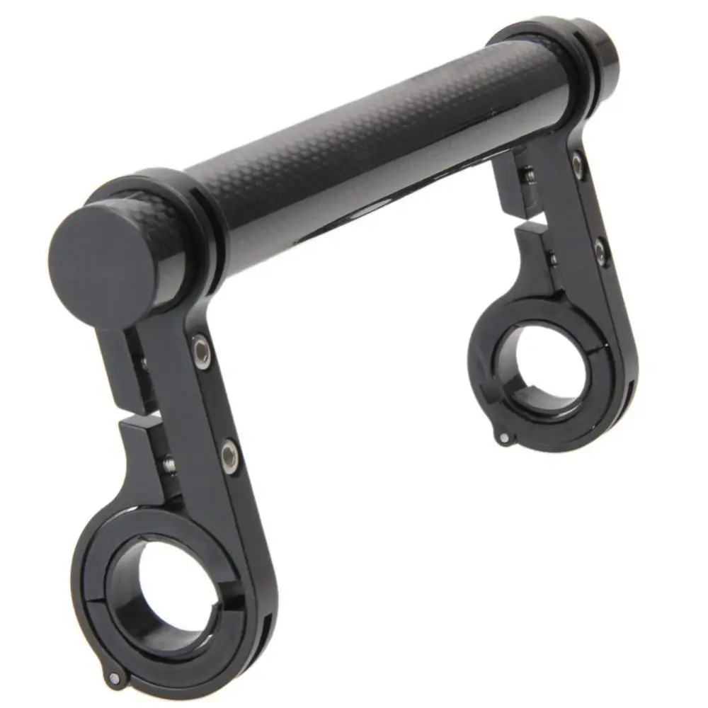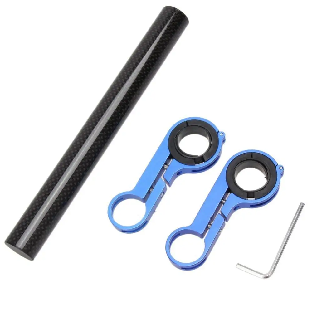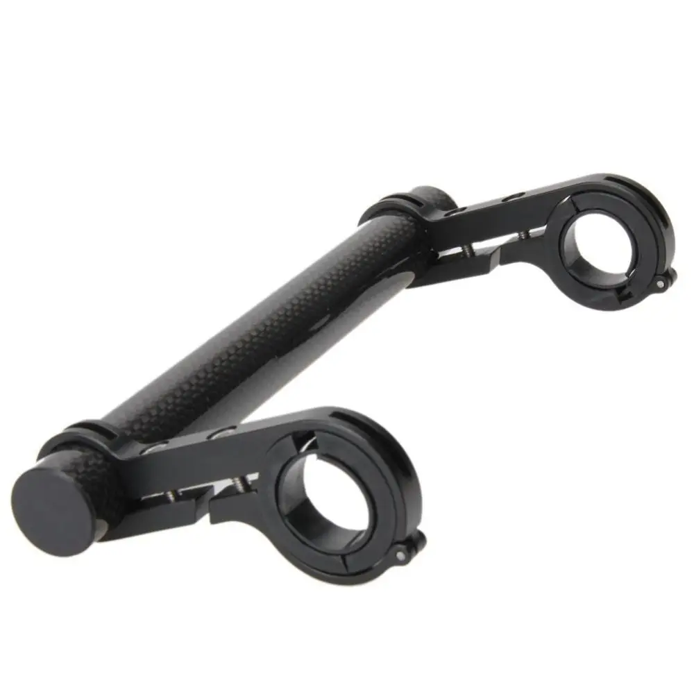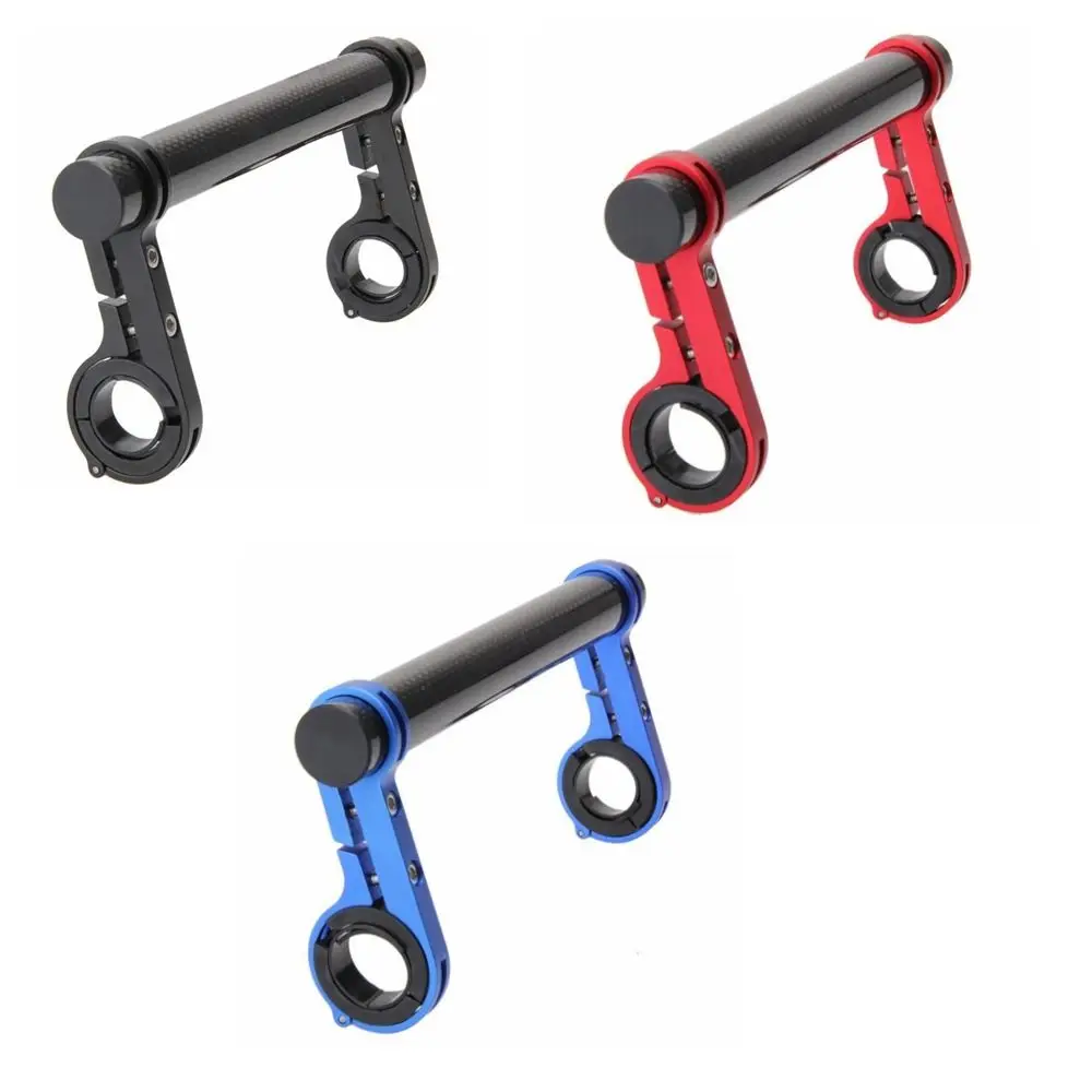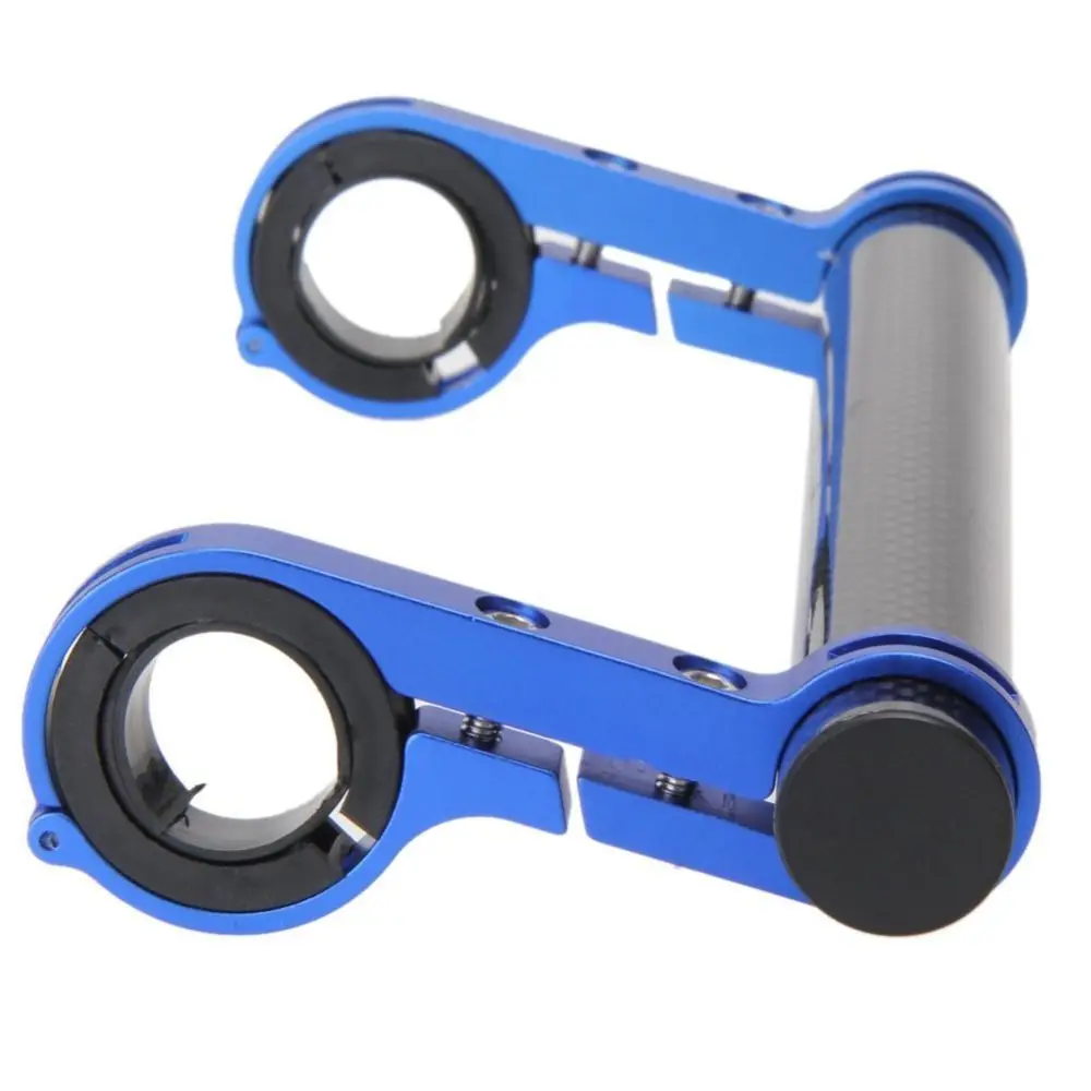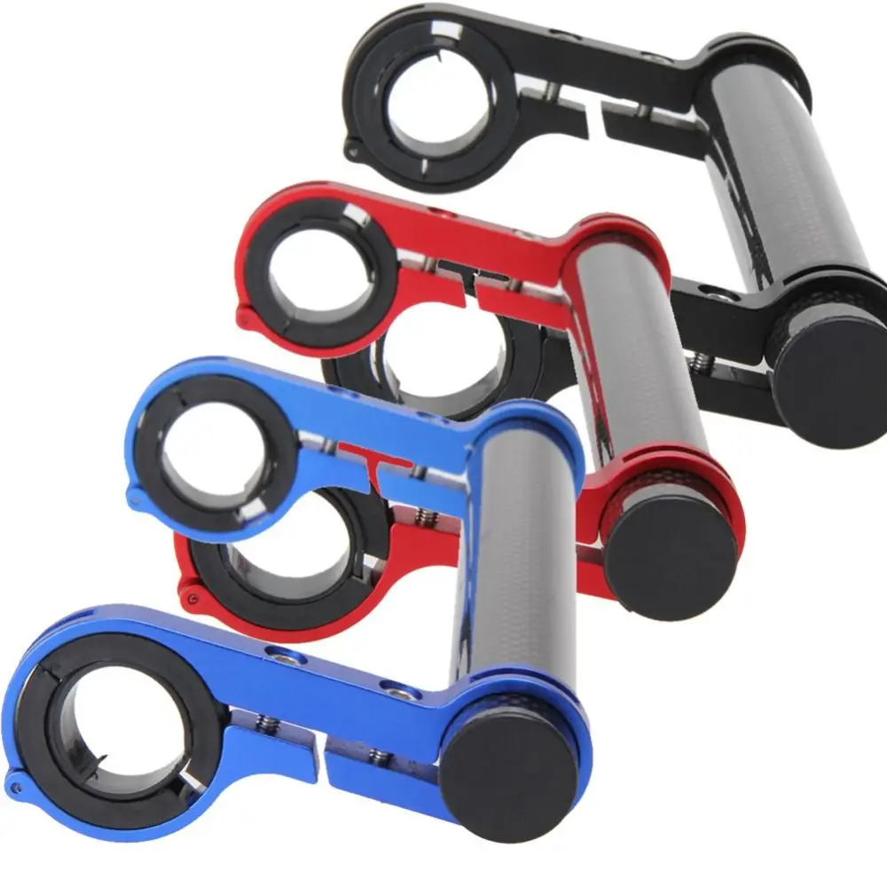 Material: fibra de carbono + aleación de aluminio color: negro/azul/rojo material: Soporte de aleación de aluminio + Barra de fibra de carbono longitud del soporte de aleación de aluminio: 95mm(3.74in) tamaño de la barra de fibra de carbono: 22,2*200mm (* 7.87in 0,87) Peso: aproximadamente 107g embalaje: 1 manillar de soporte de bicicleta PC