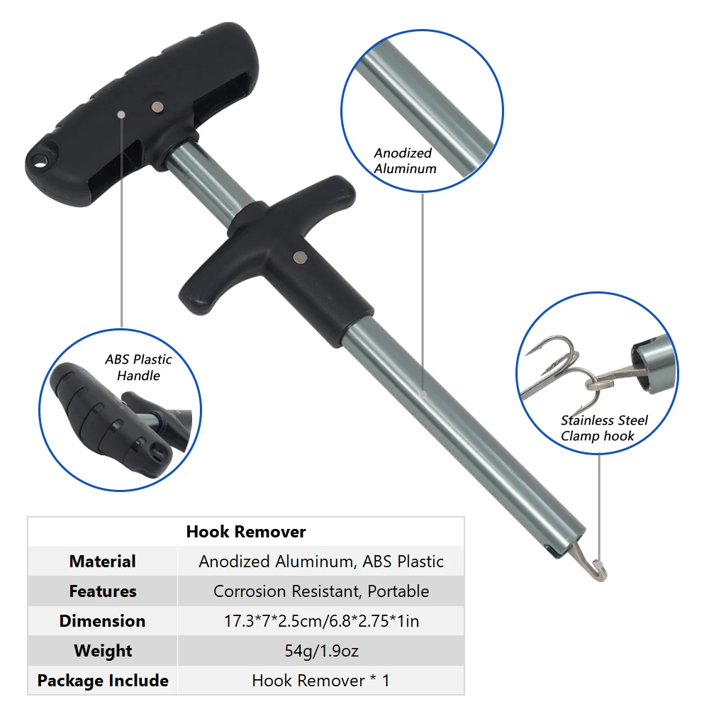 Extractor de anzuelos de pesca portátil, 17,3 cm/6,8 pulgadas, gancho de aluminio, 5 colores disponibles