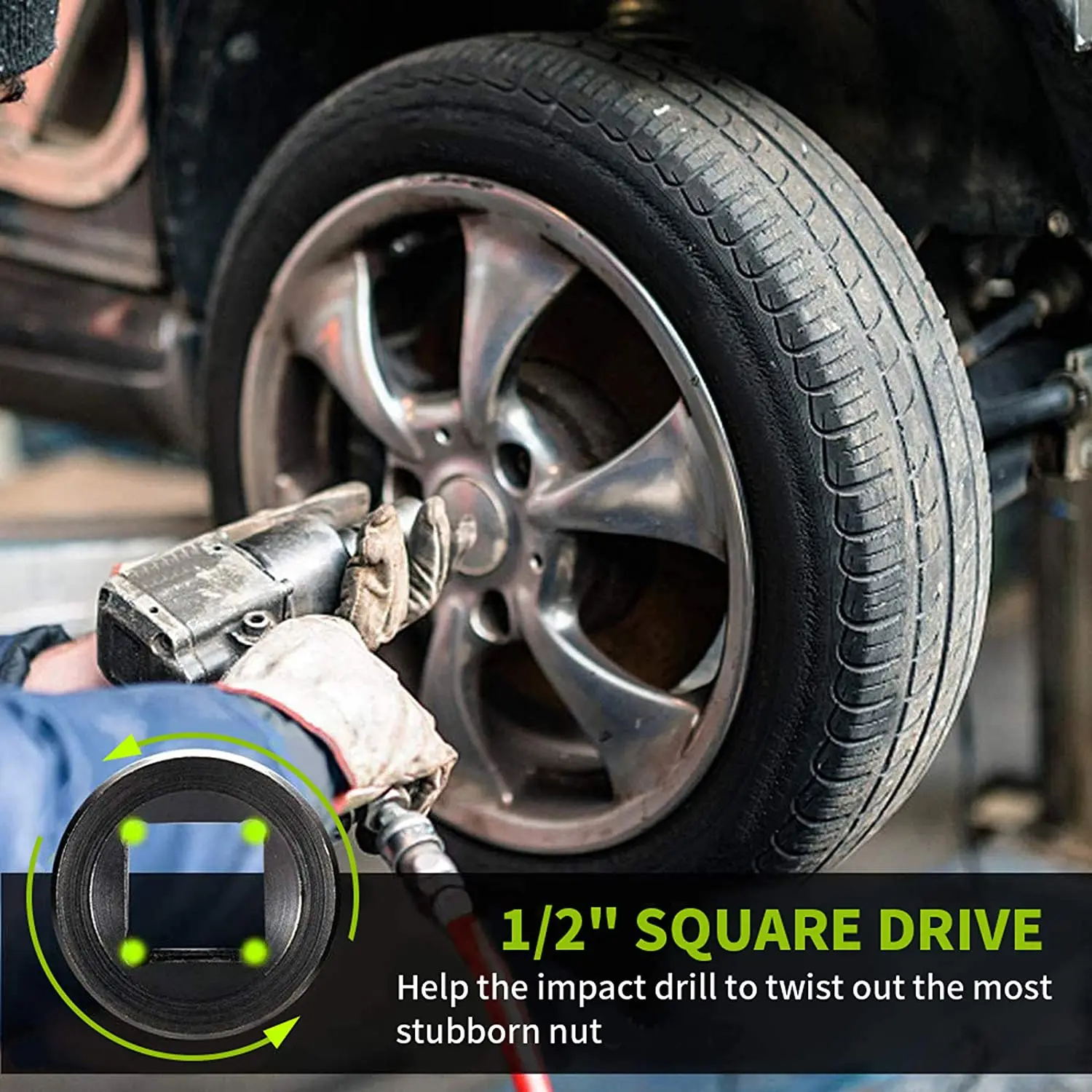 5.Funciona con sus herramientas: la cabeza cuadrada de 1/2 pulgada se adapta a su llave; Funciona con trinquetes, martillos o llaves de mano (no incluidas); no compatible con herramientas de impacto
