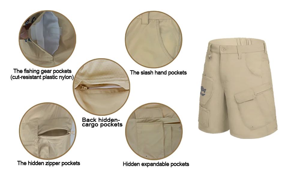 9 BOLSILLOS CONVENIENTES: 3 bolsillos para aparejos de pesca de pierna derecha forrados con nailon plástico resistente a cortes para que puedas poner cualquier cosa como alicates, tijeras, cuchillos y más.1 bolsillo oculto con cremallera y 1 bolsillo con solapa en la pierna izquierda le permiten guardar algunos artículos importantes como licencias, billeteras, teléfonos y más.2 bolsillos para las manos cortados, 2 bolsillos traseros tipo cargo con cremallera, son profundos y fáciles de introducir.Todos mantienen sus elementos esenciales seguros y de acceso rápido.El diseño de múltiples bolsillos proporciona un amplio espacio de almacenamiento.Impecable!