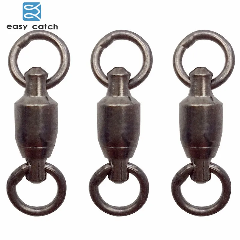 Fácil de atrapar 4 piezas rodamiento de bolas giratorio de pesca con anillo sólido negro níquel latón gancho de pesca conector de línea accesorios de pesca