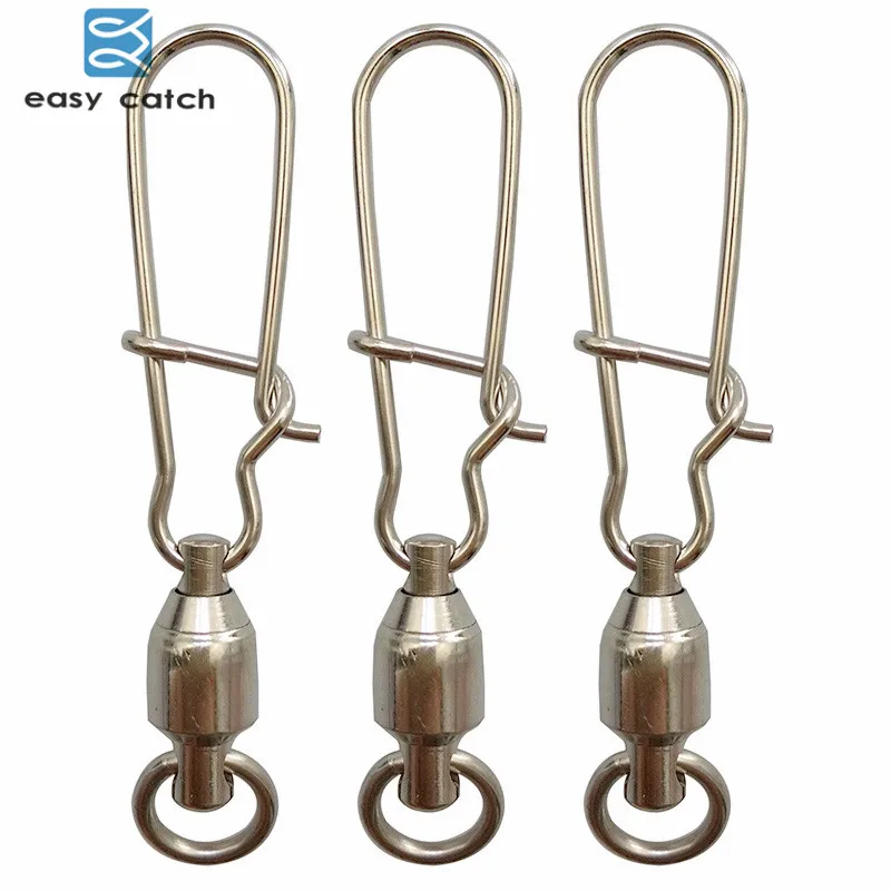 Fácil de atrapar 7 piezas rodamiento de bolas giratorio de pesca con bonito broche de plata de acero inoxidable señuelo de pesca duro accesorios de conector