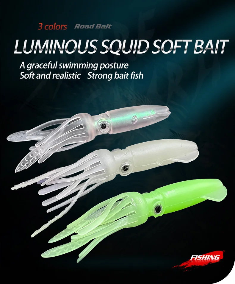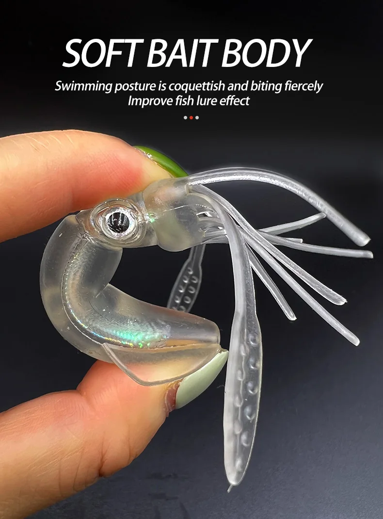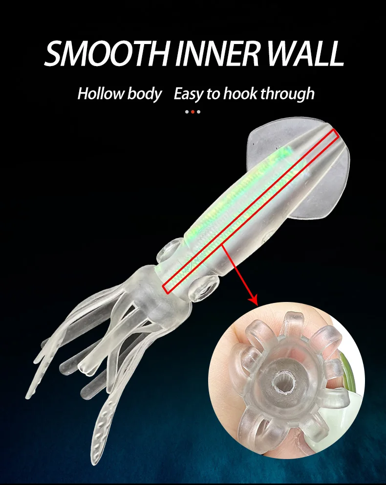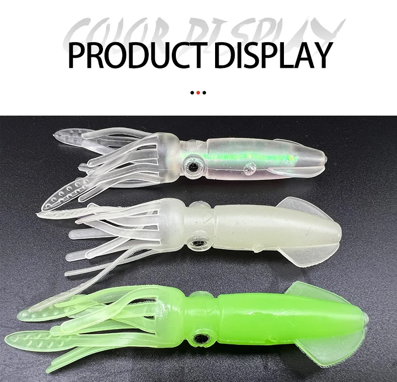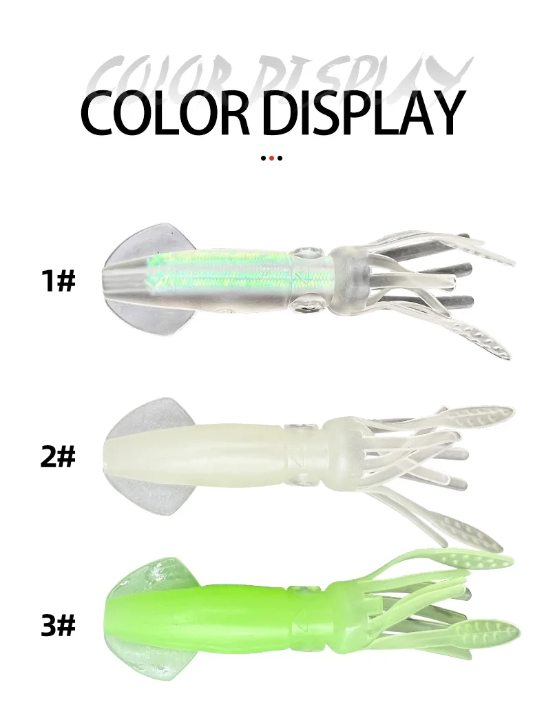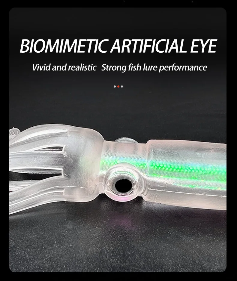 【Realistas】:El cuerpo de cebo de pez Calamar de plástico suave realista, los ojos grandes y la falda atractiva crean movimientos de natación vívidos en el agua para atraer peces grandes. ¡Como un calamar real!