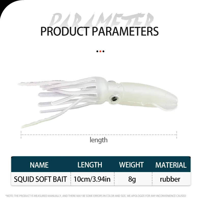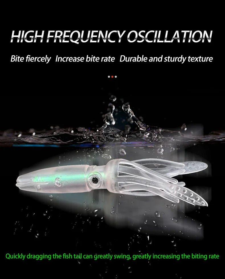 【Material】:El cebo de pesca con falda de calamar está hecho de caucho de alta calidad, suave y resistente, resistente al desgaste y a las mordeduras.