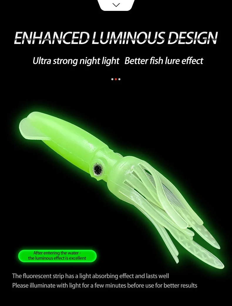 【Color】:La falda de sepia brilla en la oscuridad para atraer a los peces curiosos, mientras que el diseño de la falda gruesa garantiza que el anzuelo esté oculto para ayudarte a atrapar más peces.