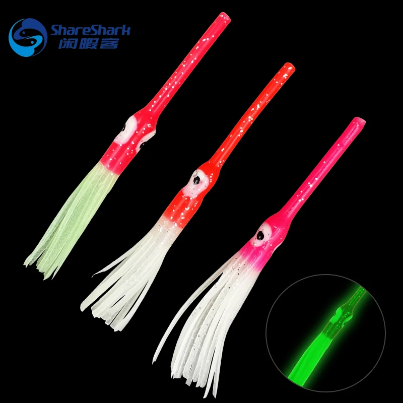 Boca larga Faldas de calamar suave Falda de pulpo Señuelos de Pesca de Mar Cebos Sabiki Rig Pesca Anguila Señuelos Jig Agua salada