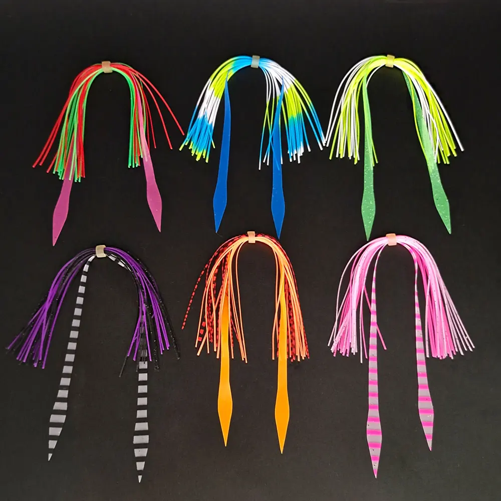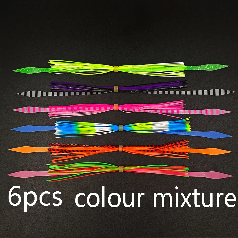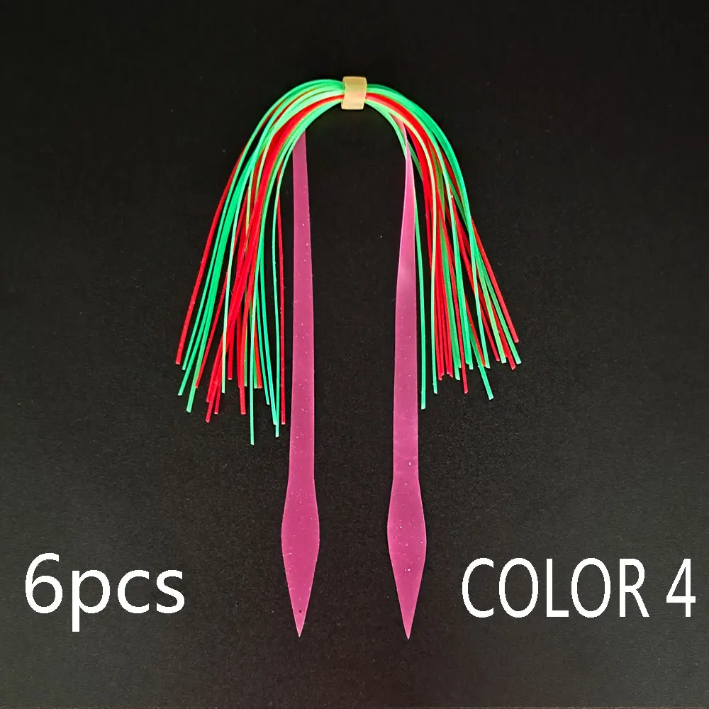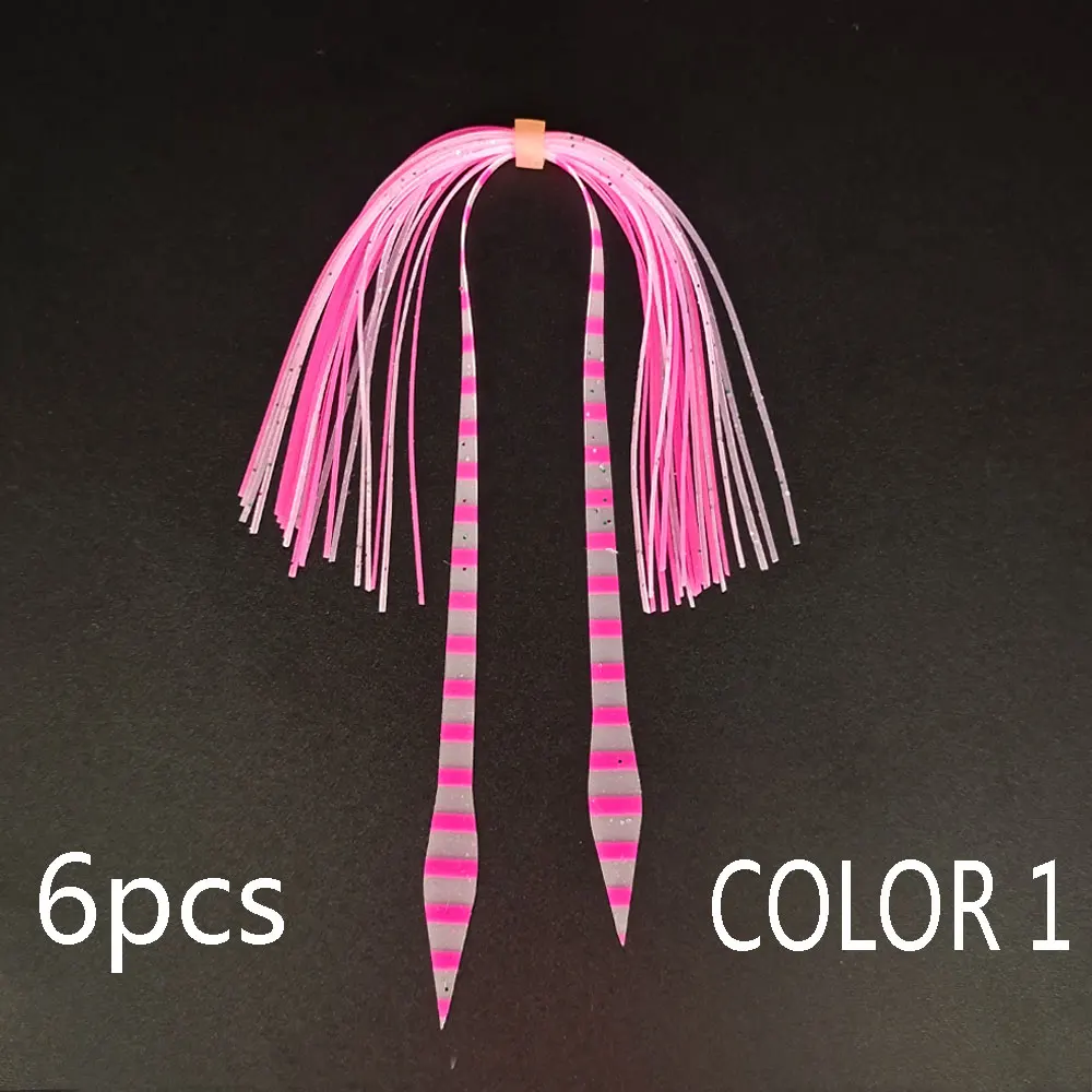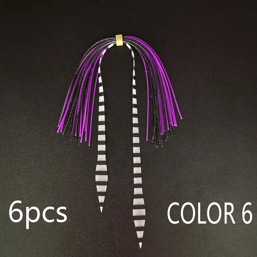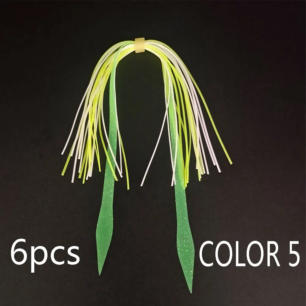 Falda de silicona de 6 mechones, cebo de pesca Jigging, pargo, calamar, pulpo, faldas de goma elásticas, accesorios de aparejos, Spinner, cebo de zumbido