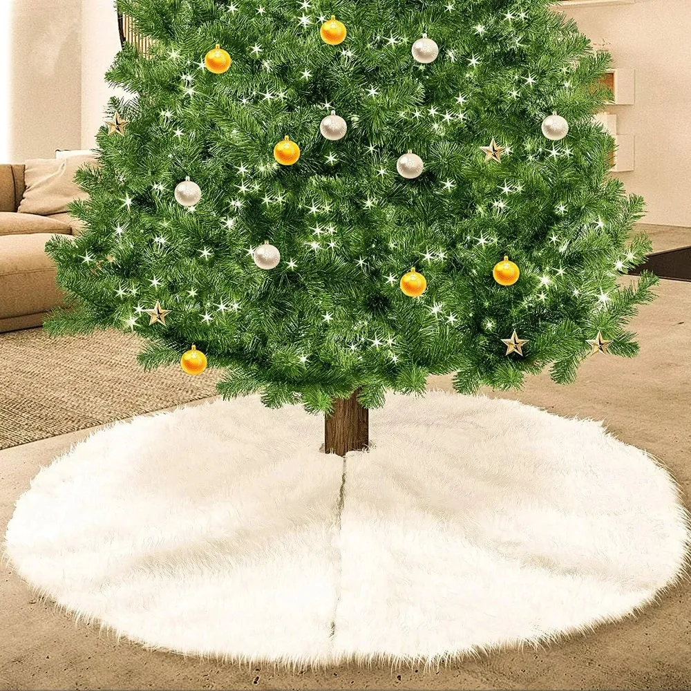 Faldas de árbol de Navidad de piel sintética, 78/90/120CM, Falda de felpa, cubierta Base de árboles de Navidad, alfombra de decoración de árbol de fiesta de Feliz Navidad