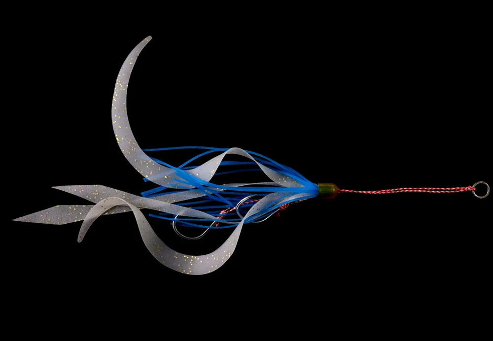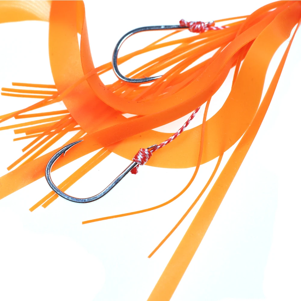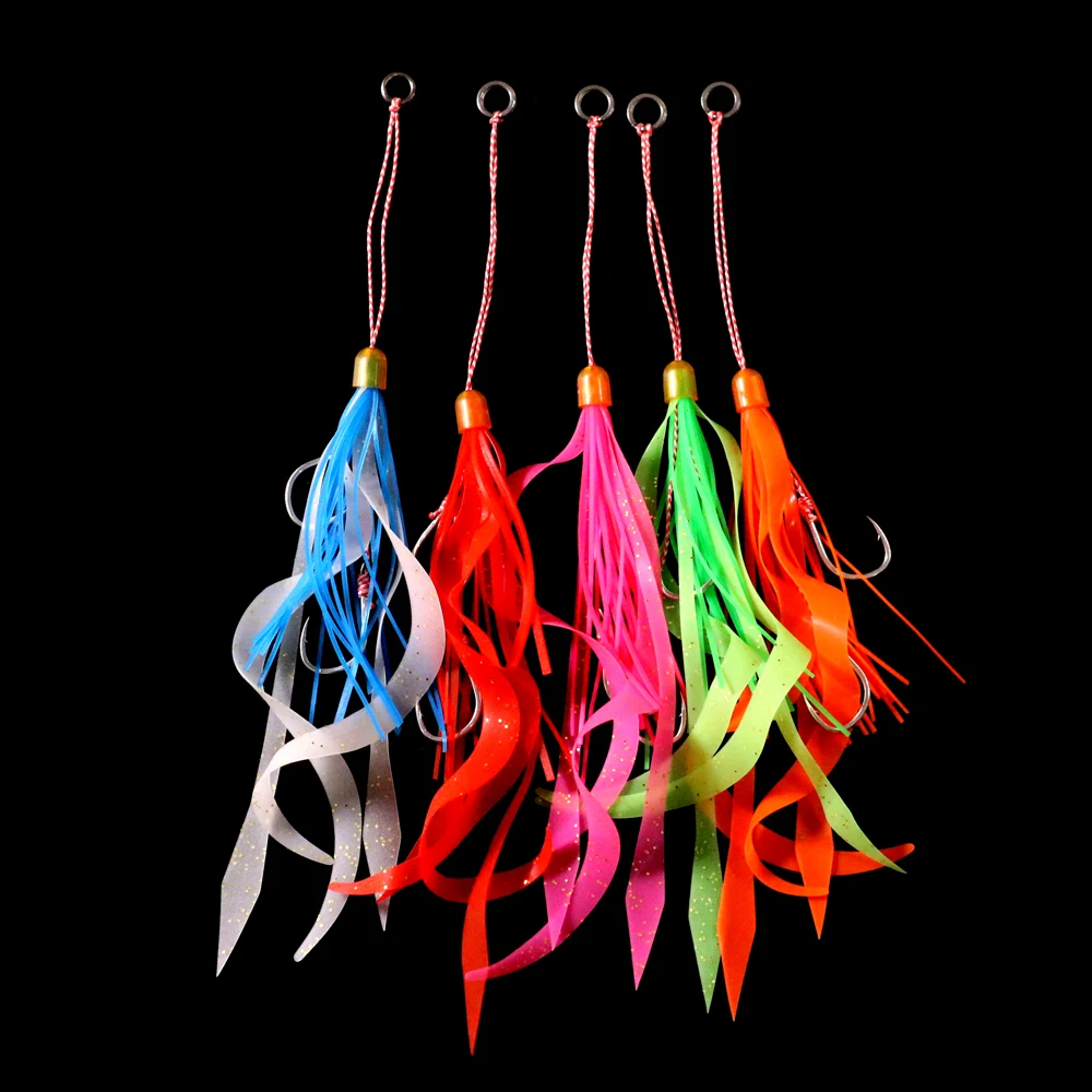 5 uds faldas de goma de silicona con ganchos asistidos gemelos para Marlin Inchiku Tai / Kabura Slider Jig señuelo agua salada snapper mero